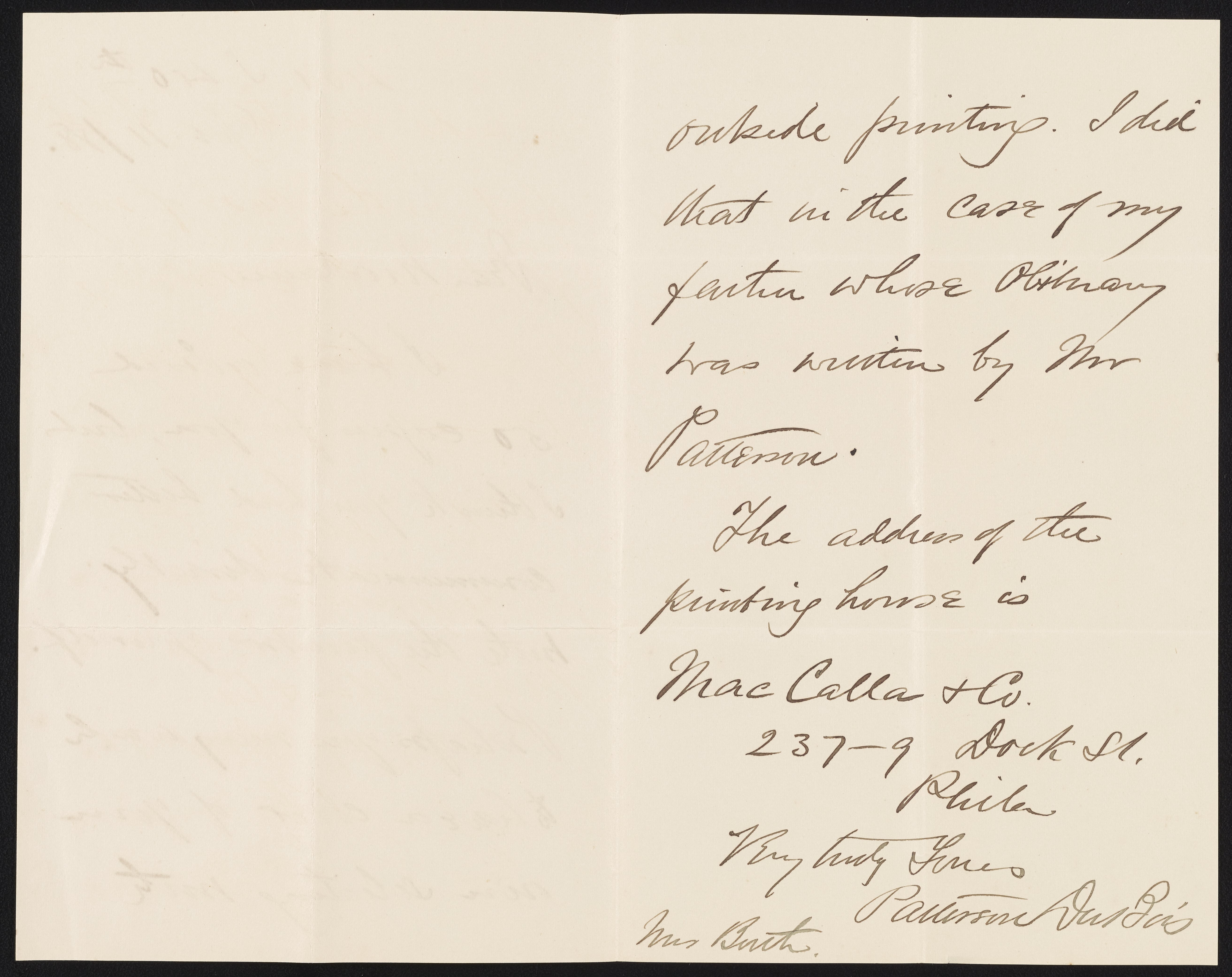 Bois, Patterson Du. “Letter from Patterson Du Bois to Margaret M. Booth, October 11, 1888,” October 11, 1888. Papers of James Curtis Booth, Box 2, Folder 7. Science History Institute. Philadelphia. https://digital.sciencehistory.org/works/88u2es8.
