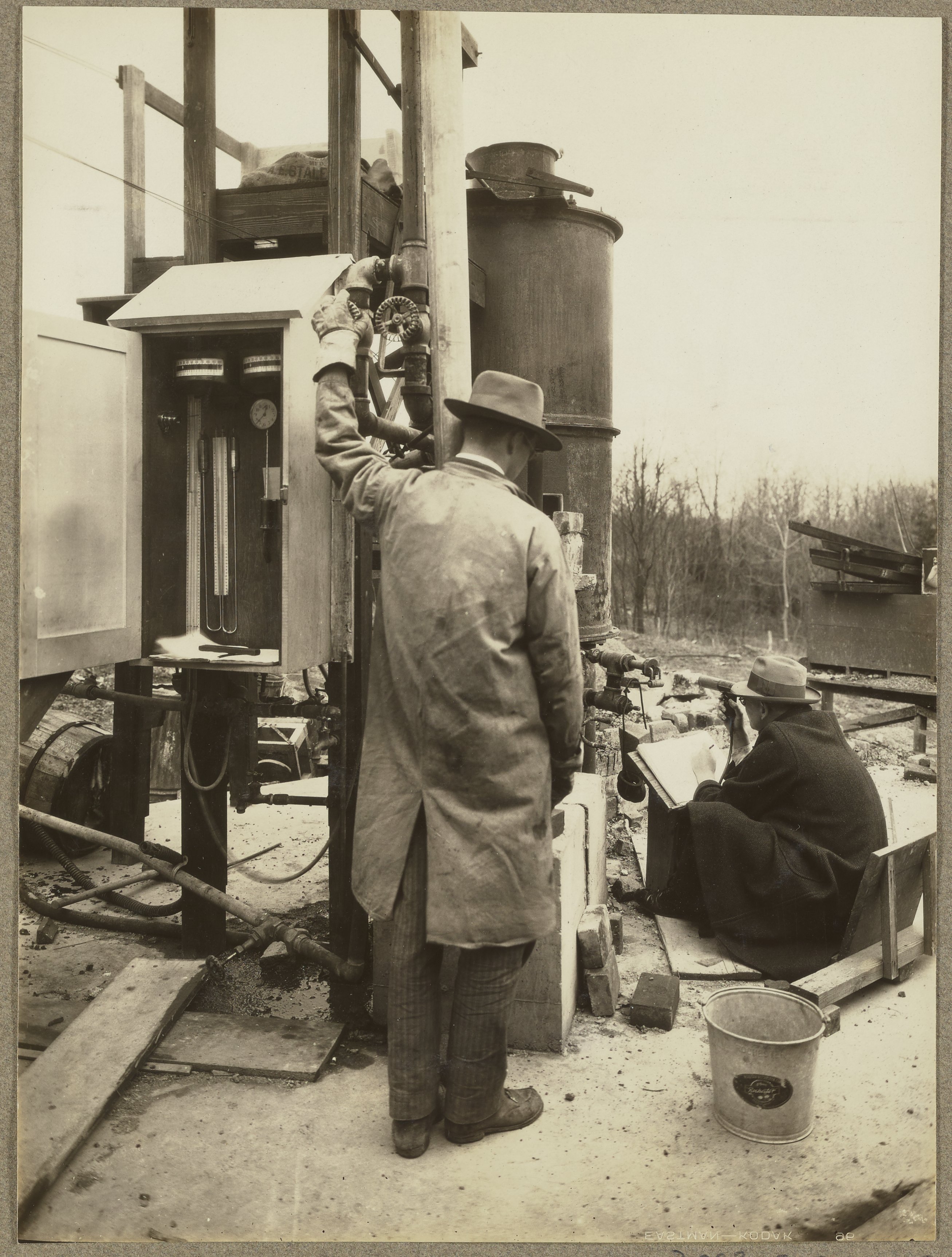 “Travis P. Hignett and Mr. Royster Reading Temperature inside Experimental Blast Furnace,” March 21, 1930. Travis P. Hignett Collection of Fixed Nitrogen Research Laboratory Photographs, Box 1. Science History Institute. Philadelphia. https://digital.sciencehistory.org/works/8910jt762.
