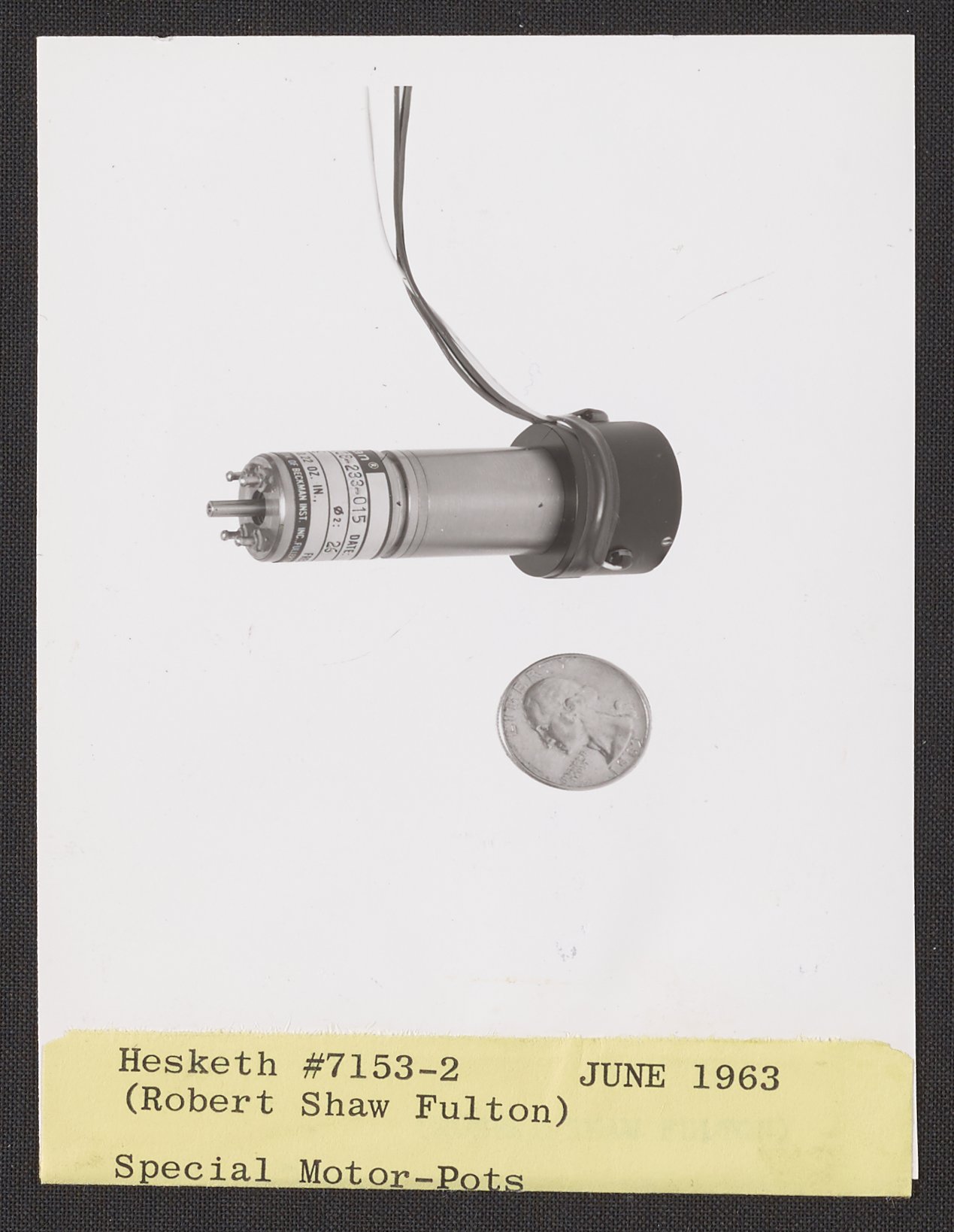 Hesketh, Dean D. “Helipot Special Motor Potentiometer with Quarter,” June 1963. Beckman Historical Collection, Box 85. Science History Institute. Philadelphia. https://digital.sciencehistory.org/works/8910jt99c.