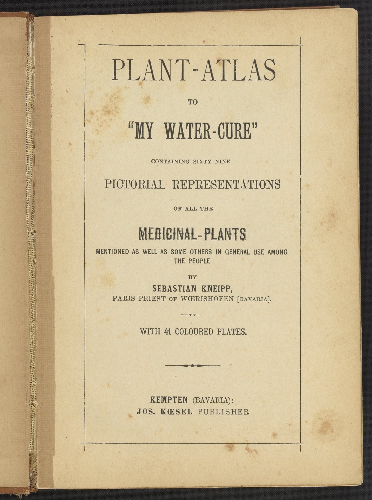Kneipp, Sebastian. “Plant-Atlas to ‘My Water-Cure," : Containing Sixty Nine Pictorial Representations of All the Medicinal-Plants Mentioned as Well as Some Others in General Use among the People.” Kempten, Germany: J. Koesel, 1893. https://digital.sciencehistory.org/works/8910jv51d.