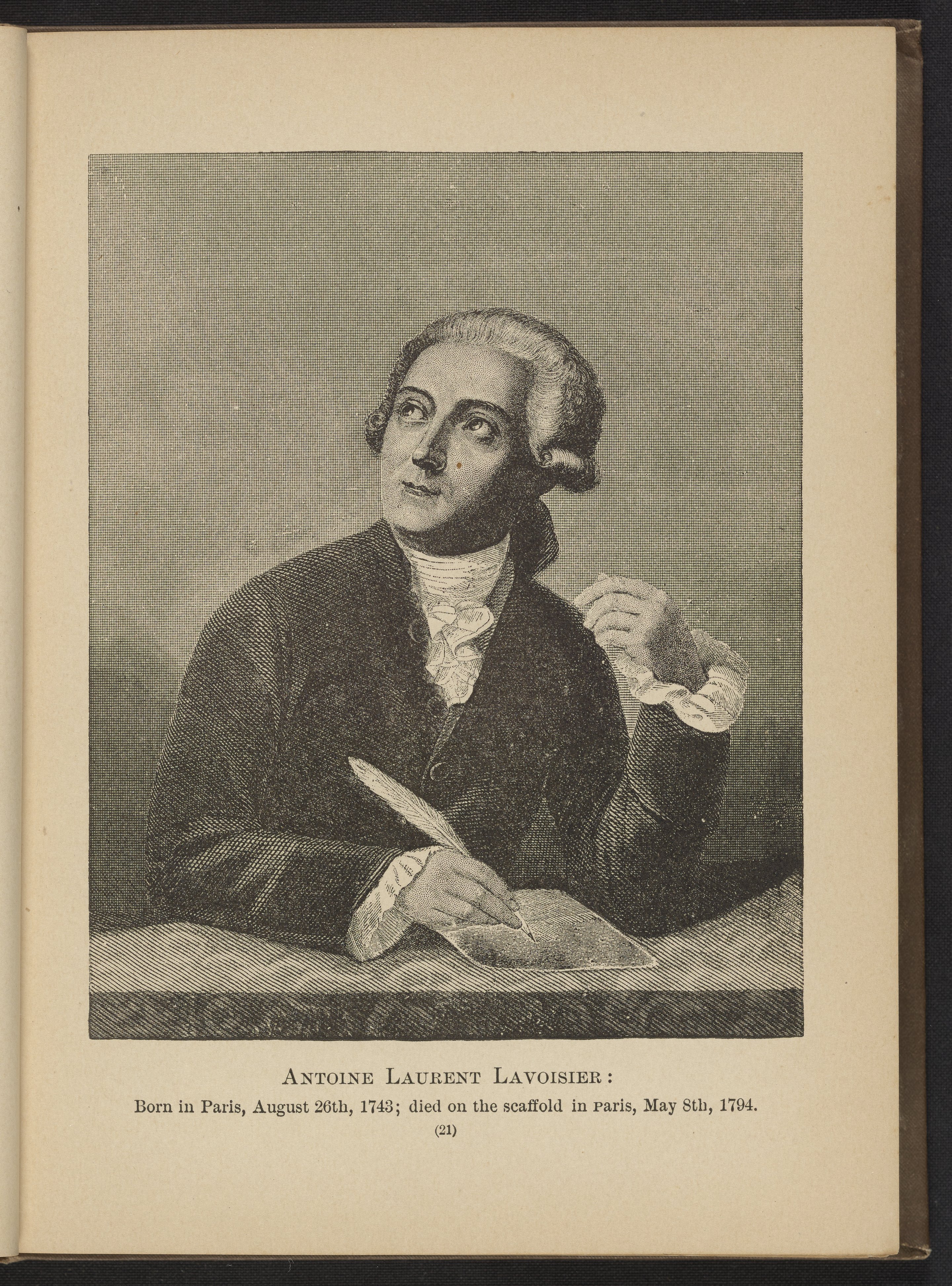Appleton, John Howard. “Portrait of Antoine Laurent Lavoisier.” Chemistry, Developed by Facts and Principles Drawn Chiefly from the Non-Metals. Providence, Rhode Island, 1884. Science History Institute. Philadelphia. https://digital.sciencehistory.org/works/8910jv71w.