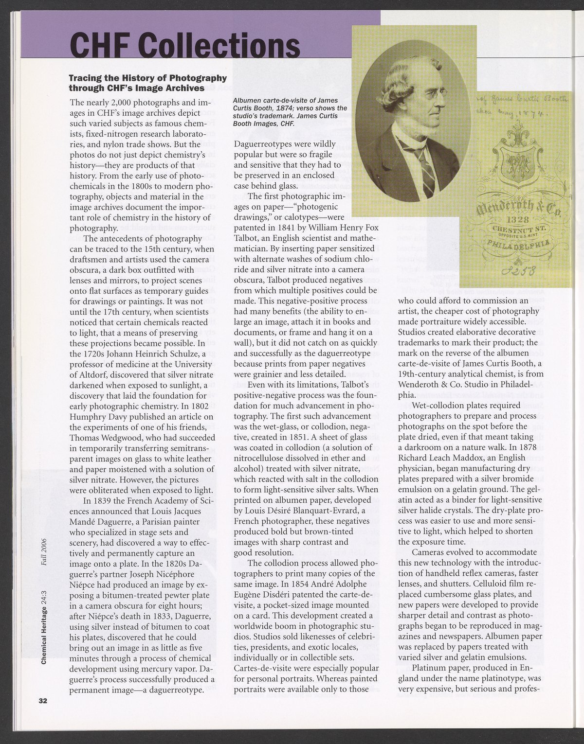 “Chemical Heritage, Volume 24 Number 3.” Philadelphia, Pennsylvania: Chemical Heritage Foundation, 2006. 099C001. Science History Institute. Philadelphia. https://digital.sciencehistory.org/works/8bd7d7u.