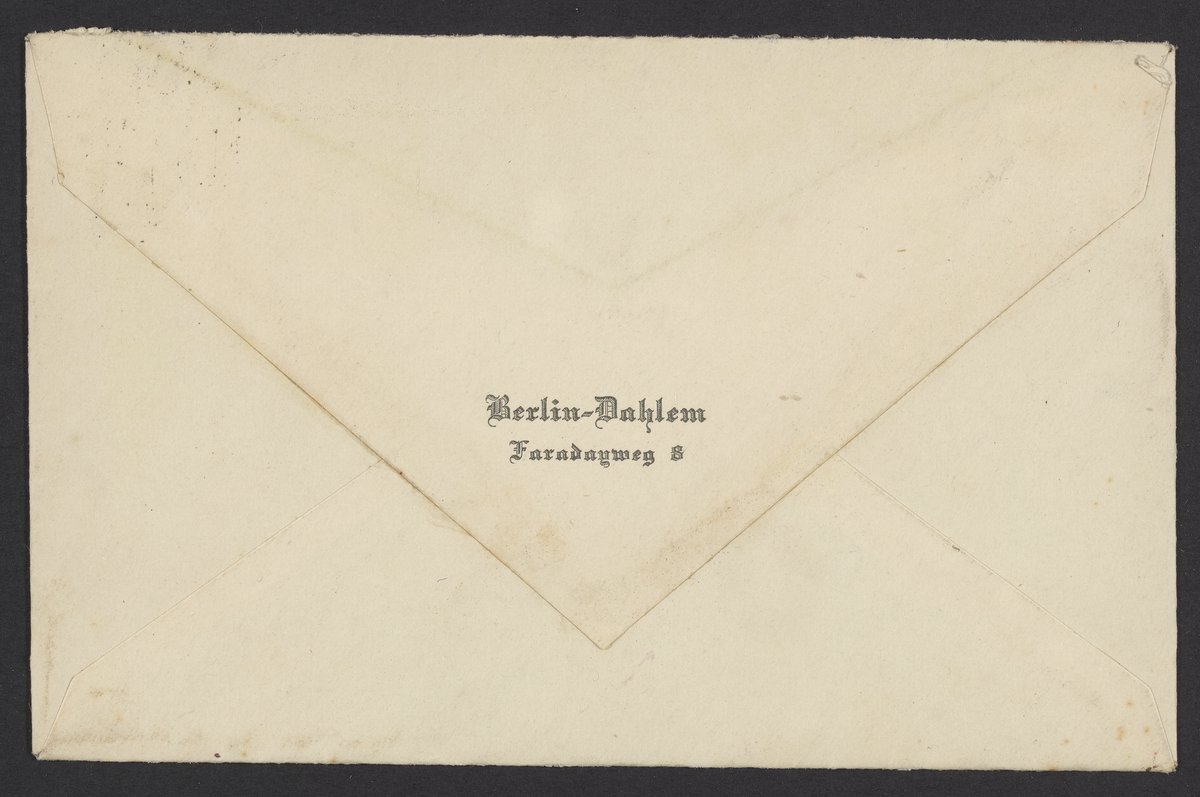 Haber, Fritz. “Envelope from Fritz Haber to Georg Bredig,” April 25, 1918. Papers of Georg and Max Bredig, Box 2, Folder 27. Science History Institute. Philadelphia. https://digital.sciencehistory.org/works/8hnq731.