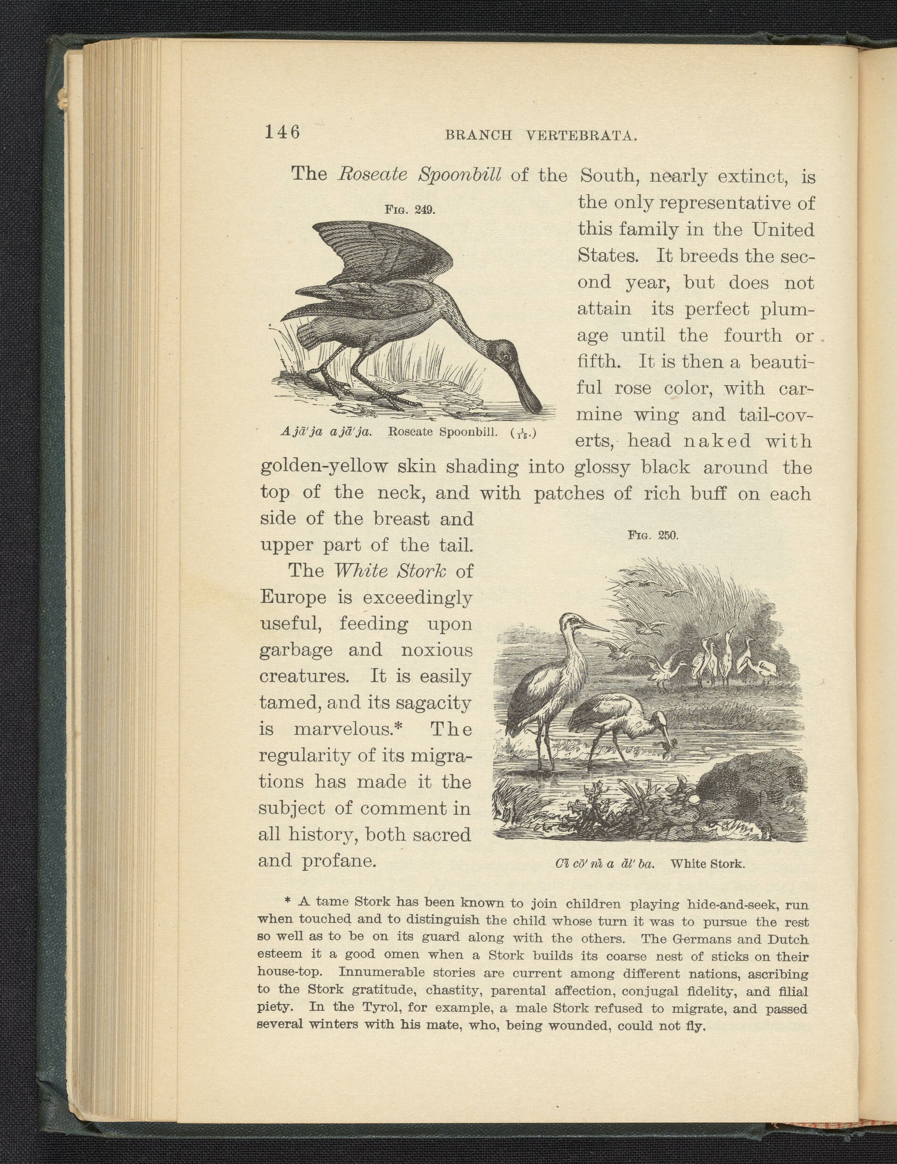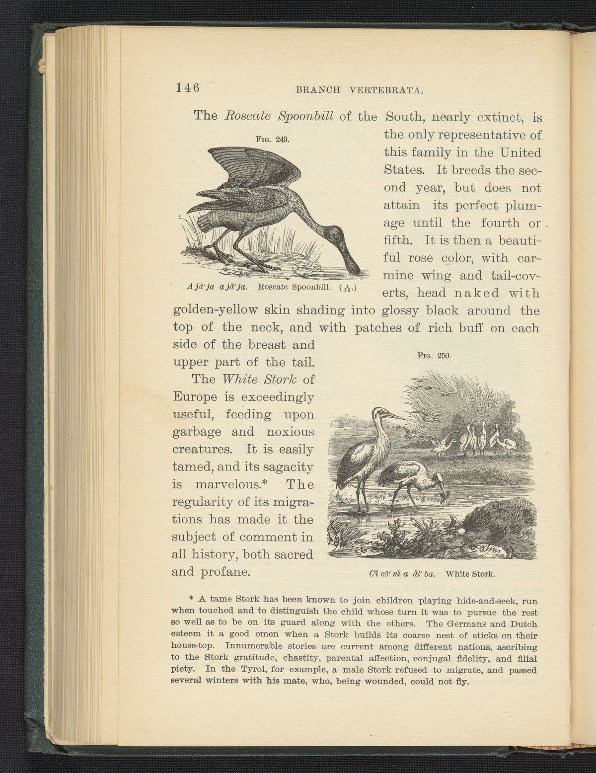 Steele, Joel Dorman, and Jenks, J. W. P. (John Whipple Potter). “Figure 249. Roseate Spoonbill. Figure 250. White Stork.” Popular Zoology. New York, New York: Chautauqua Press, 1887. https://digital.sciencehistory.org/works/8i2yjuv.