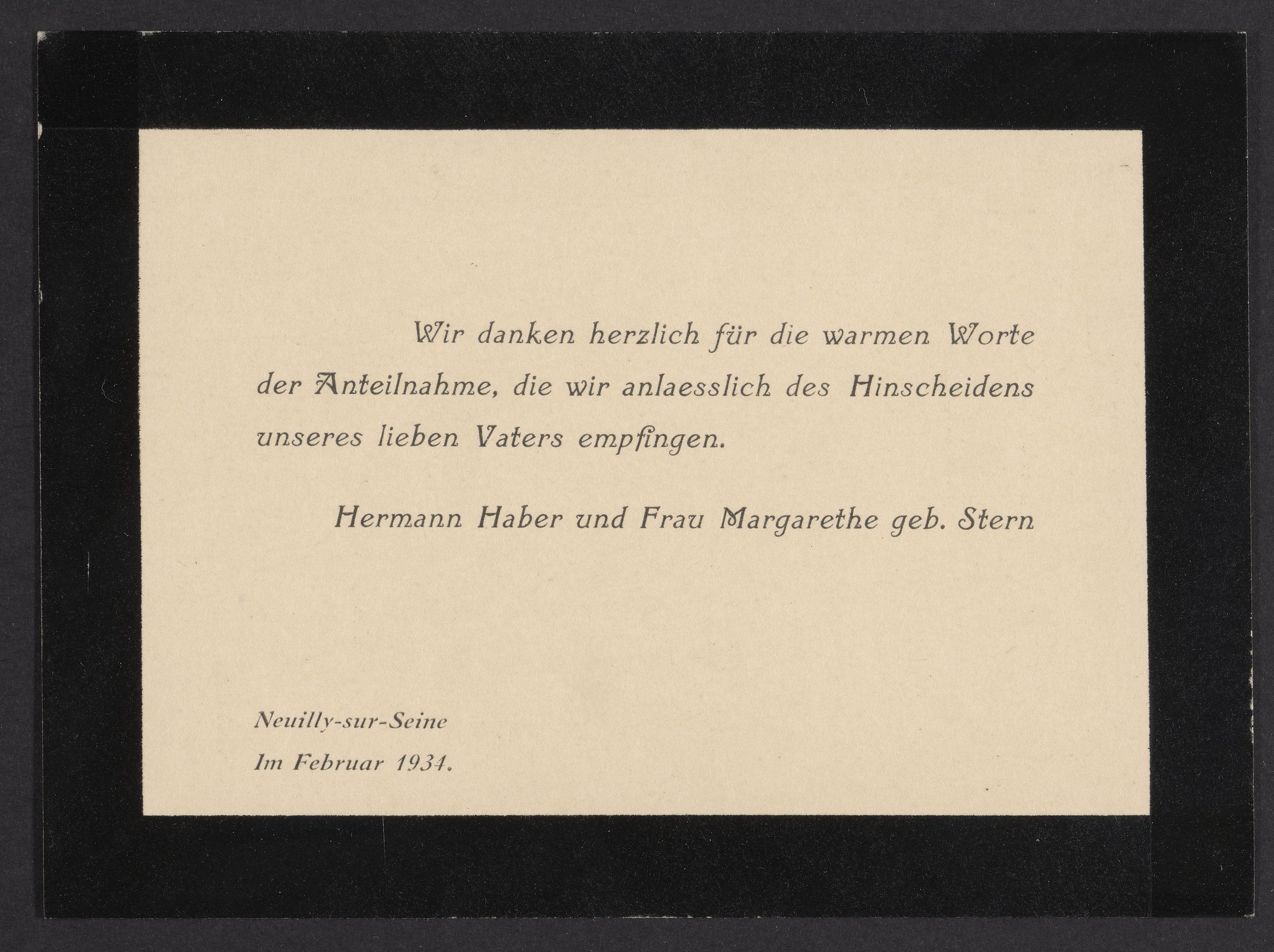 Fritz Haber's funeral card
