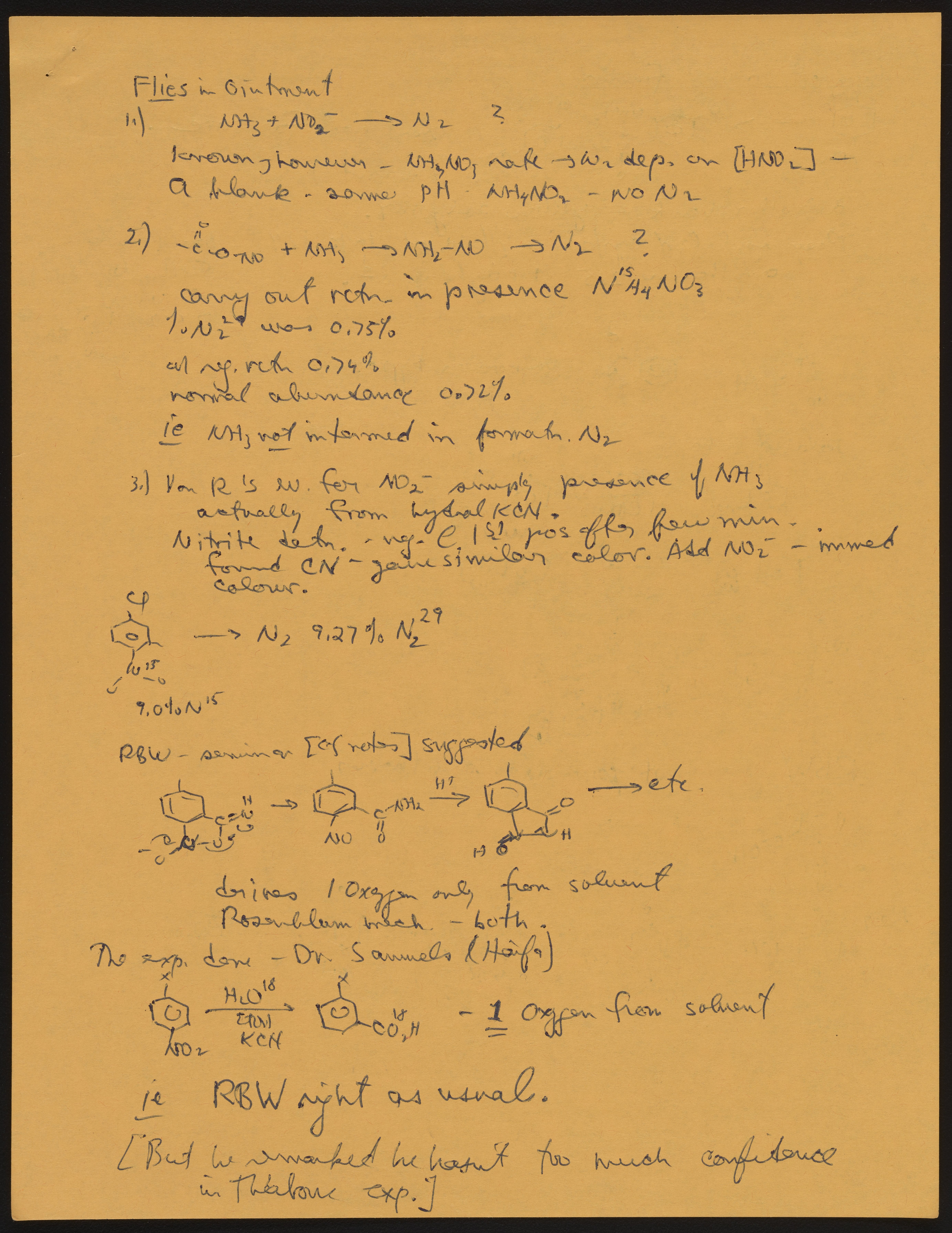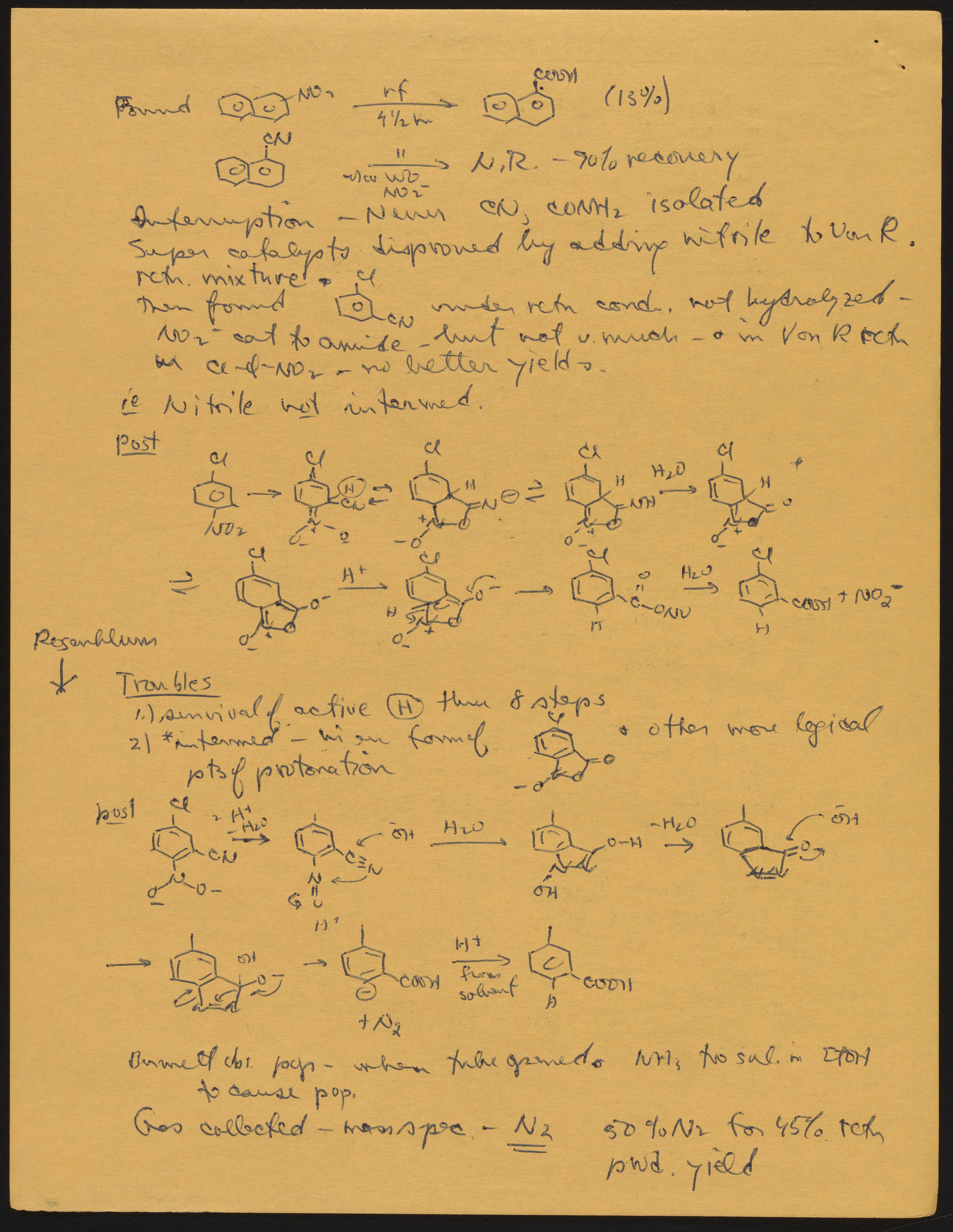 Kohler, Robert E. “R. B. (Robert Burns) Woodward Seminar Entitled ‘Rosenblum - Von Richter [Reaction]".” Notes from R. B. (Robert Burns) Woodward's Seminars, circa 1959–1966. Folder 2. Science History Institute. Philadelphia. https://digital.sciencehistory.org/works/8k71nj325.