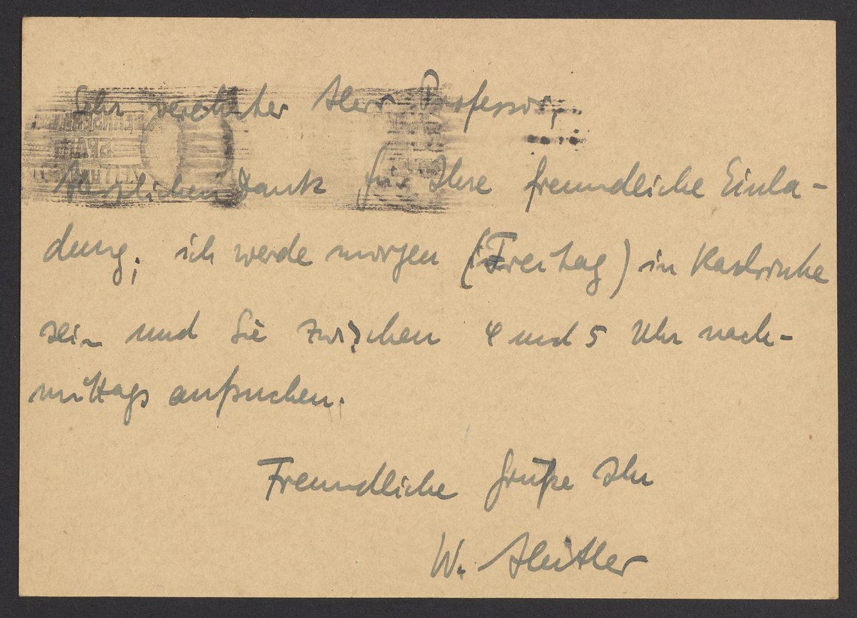Heitler, Walter. “Postcard from Walter Heitler to Georg Bredig, August 1930,” August 23, 1930. Papers of Georg and Max Bredig, Box 2, Folder 28. Science History Institute. Philadelphia. https://digital.sciencehistory.org/works/8klishb.