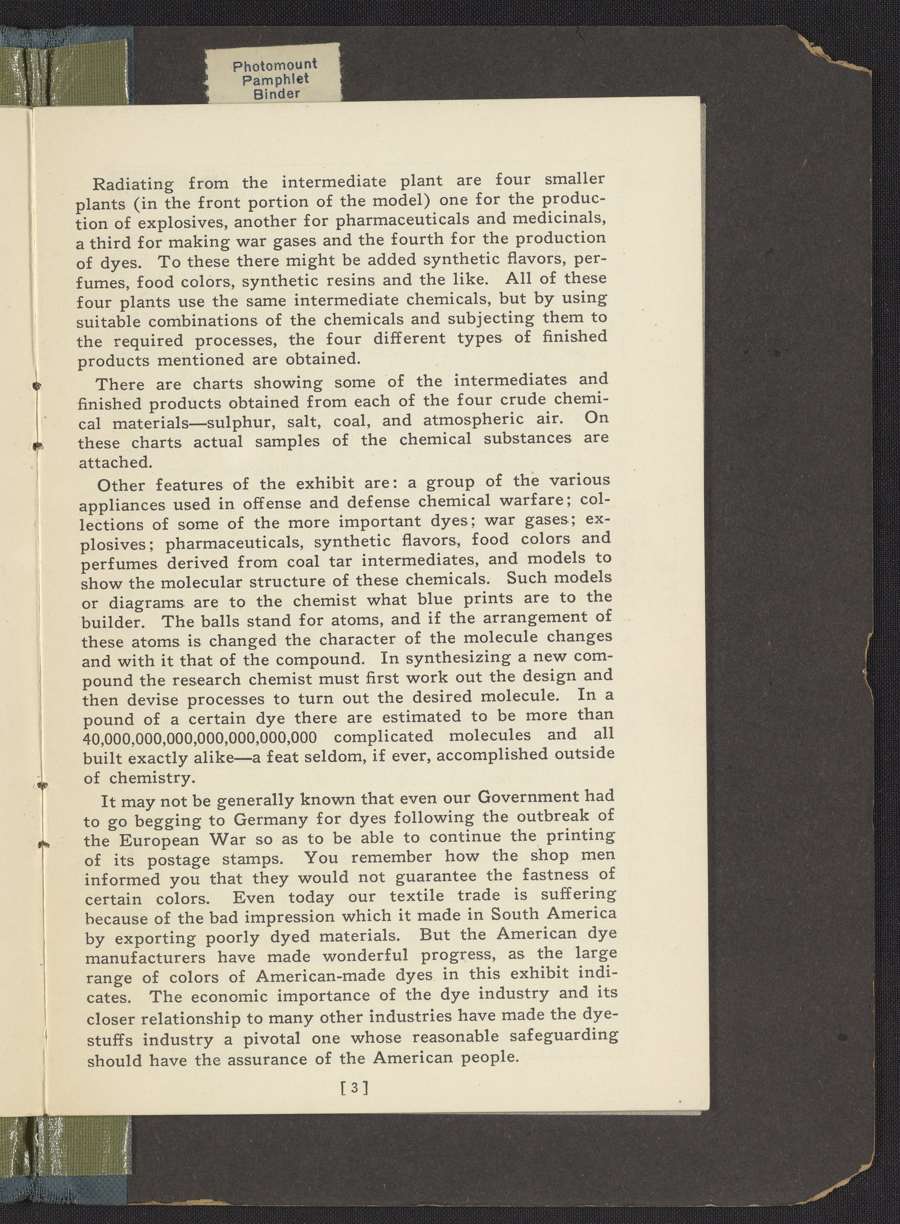 An Exhibit Prepared Under the Auspices of the National Research Council with the Cooperation of the Chemical War Service of the United States Army, Now Permanently Installed at the Smithsonian Institute, Washington D.C.
