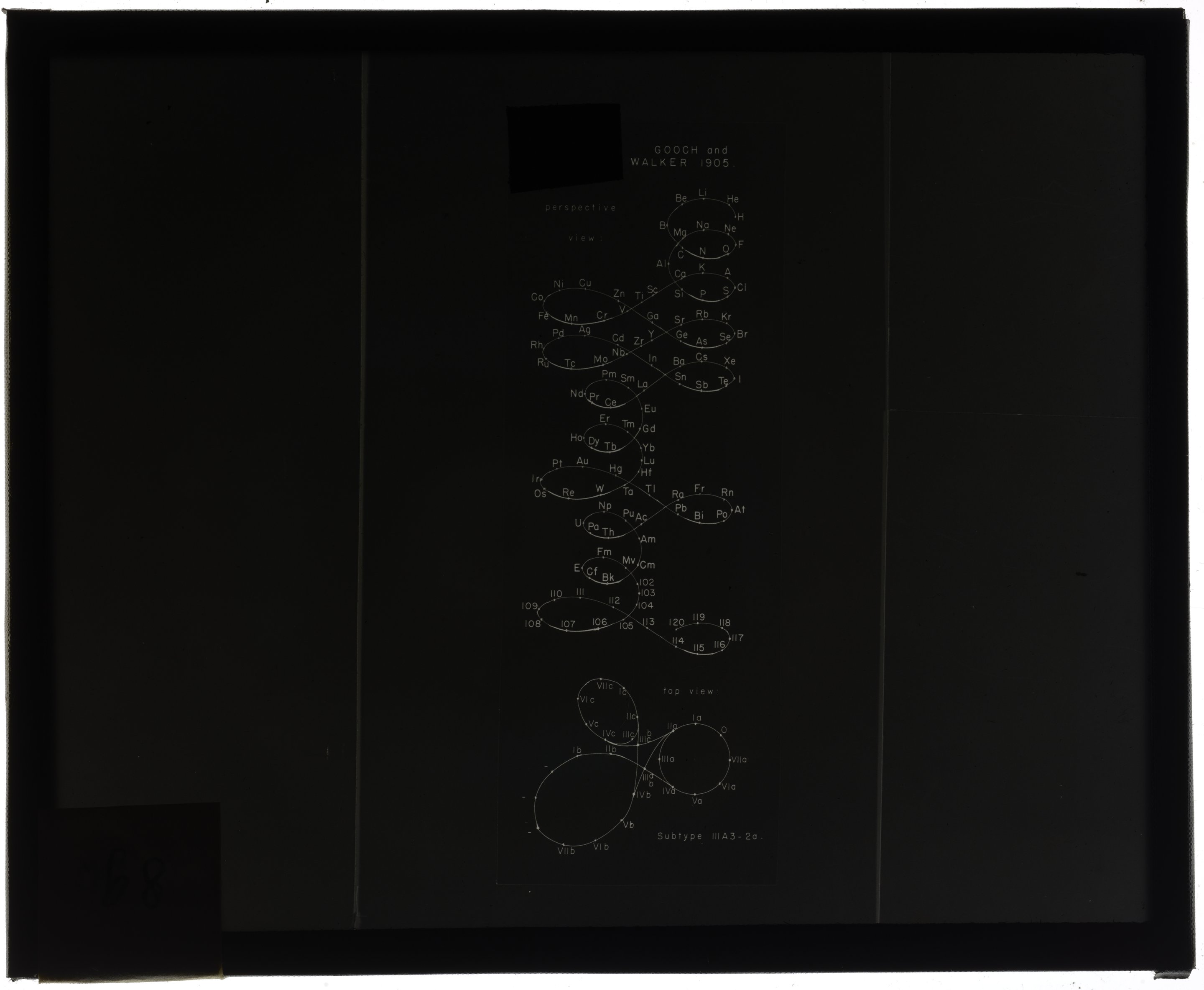 Periodic table in style of helix and space lemniscate with two additional loops for rare earth elements1905 (Original design), Circa 1957 (Date attributed to slide)