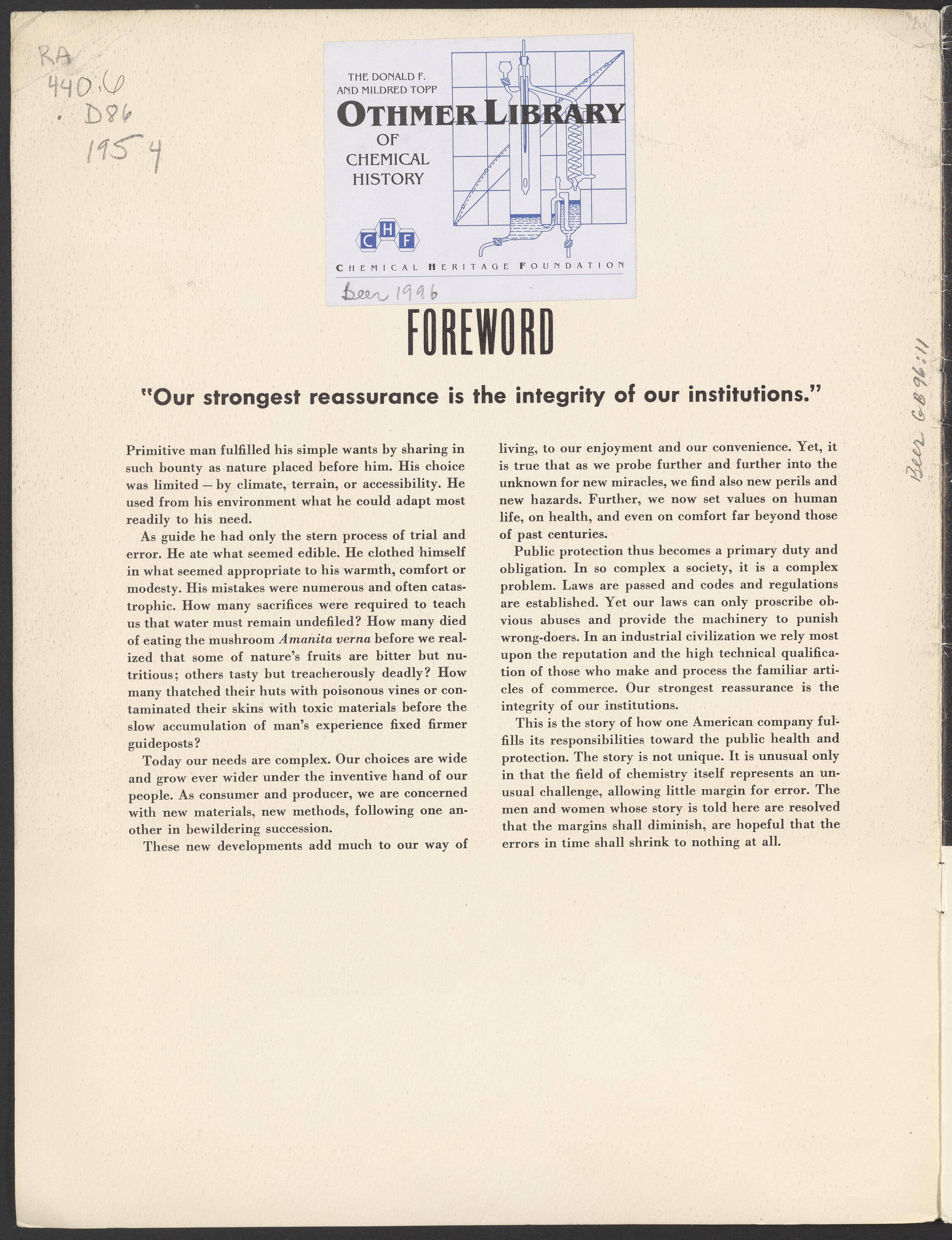 E.I. du Pont de Nemours & Company. “Protecting the Public Health.” Wilmington, Delaware: E.I. du Pont de Nemours & Company, 1954. RA440.6 .D86 1954. Science History Institute. Philadelphia. https://digital.sciencehistory.org/works/8rf9tbm.