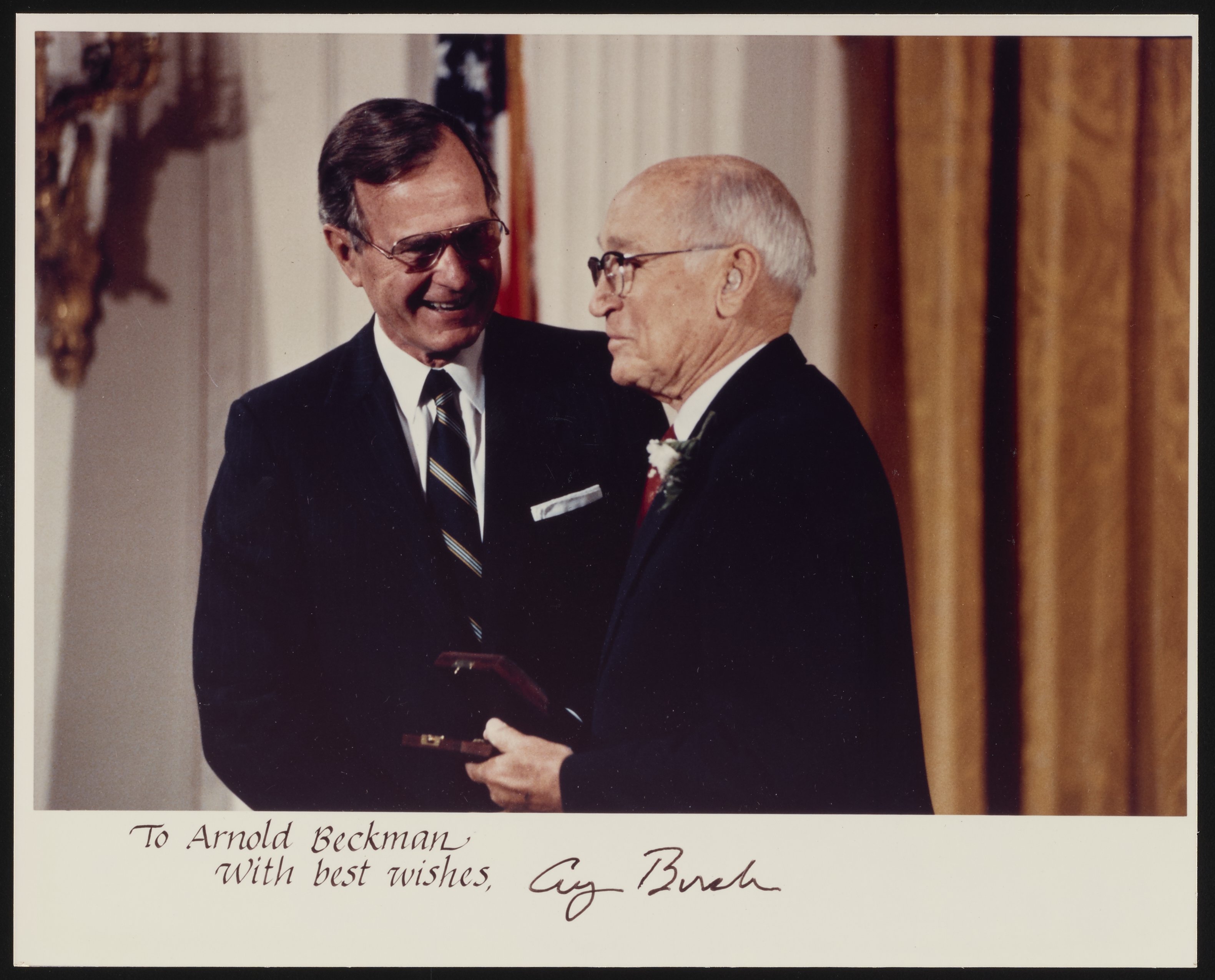 Full-sized JPG1130 x 1287px — 343 KBOriginal fileTIFF — 1130 x 1287px — 4.2 MBArnold O. Beckman at the White House with President George H. W. Bush, receiving the National Medal of Science "for his leadership in the development of analytical instrumentation, and for his deep and abiding concern for the vitality of the Nation's scientific enterprise."