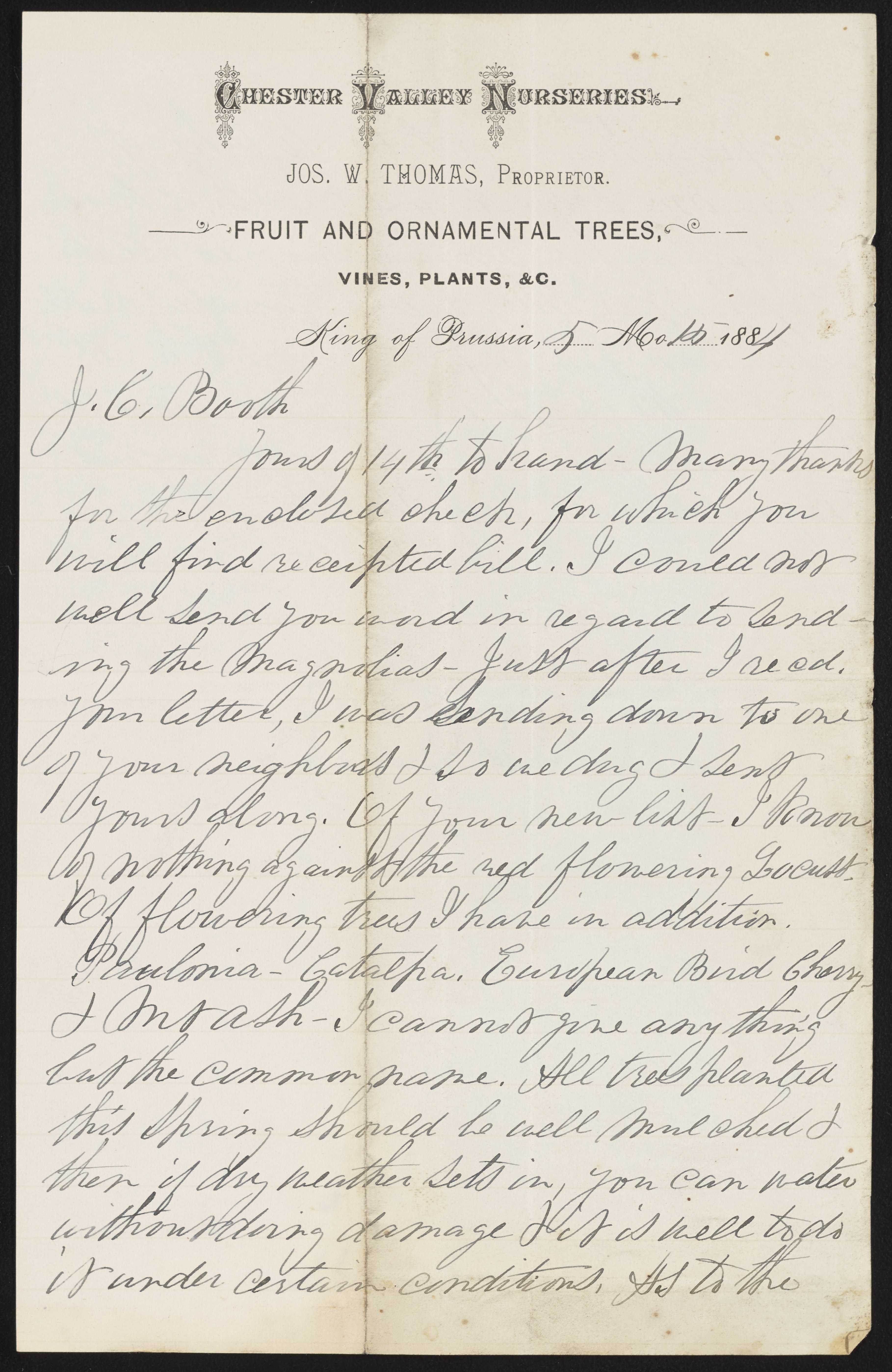 Letter from J.W. Thomas to James Curtis Booth, May 15, 1884