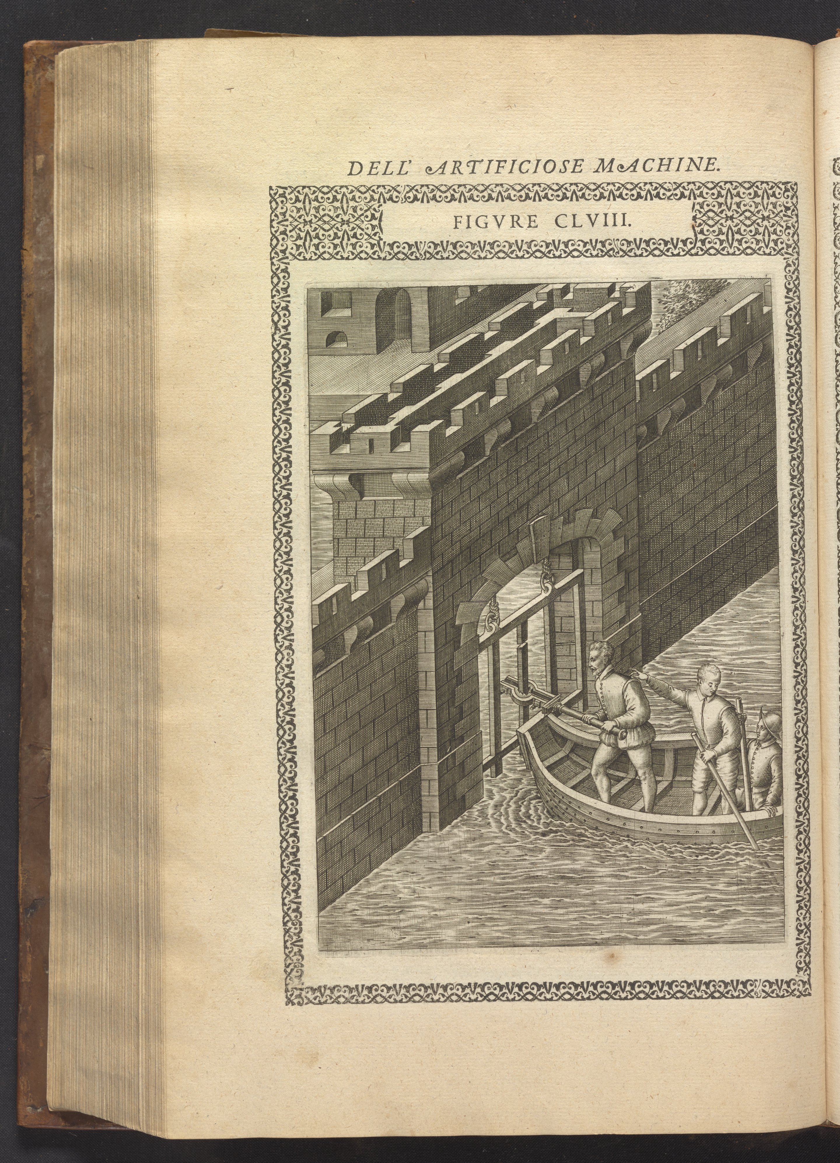 Ramelli, Agostino. “Plate 158: Screw-Jack for Breaking the Iron Gratings of a Portcullis.” In Le Diverse Et Artificiose Machine Del Capitano Agostino Ramelli. Paris, France, 1588. https://digital.sciencehistory.org/works/9019s269z.