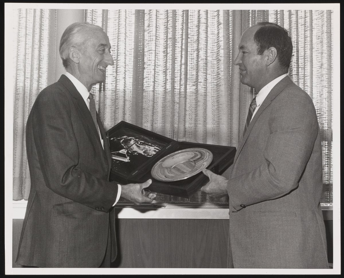 “William Ballhaus Presenting Jacques Cousteau with Award,” n.d. Beckman Historical Collection, Box 56, Folder 28. Science History Institute. Philadelphia. https://digital.sciencehistory.org/works/9306sz37r.