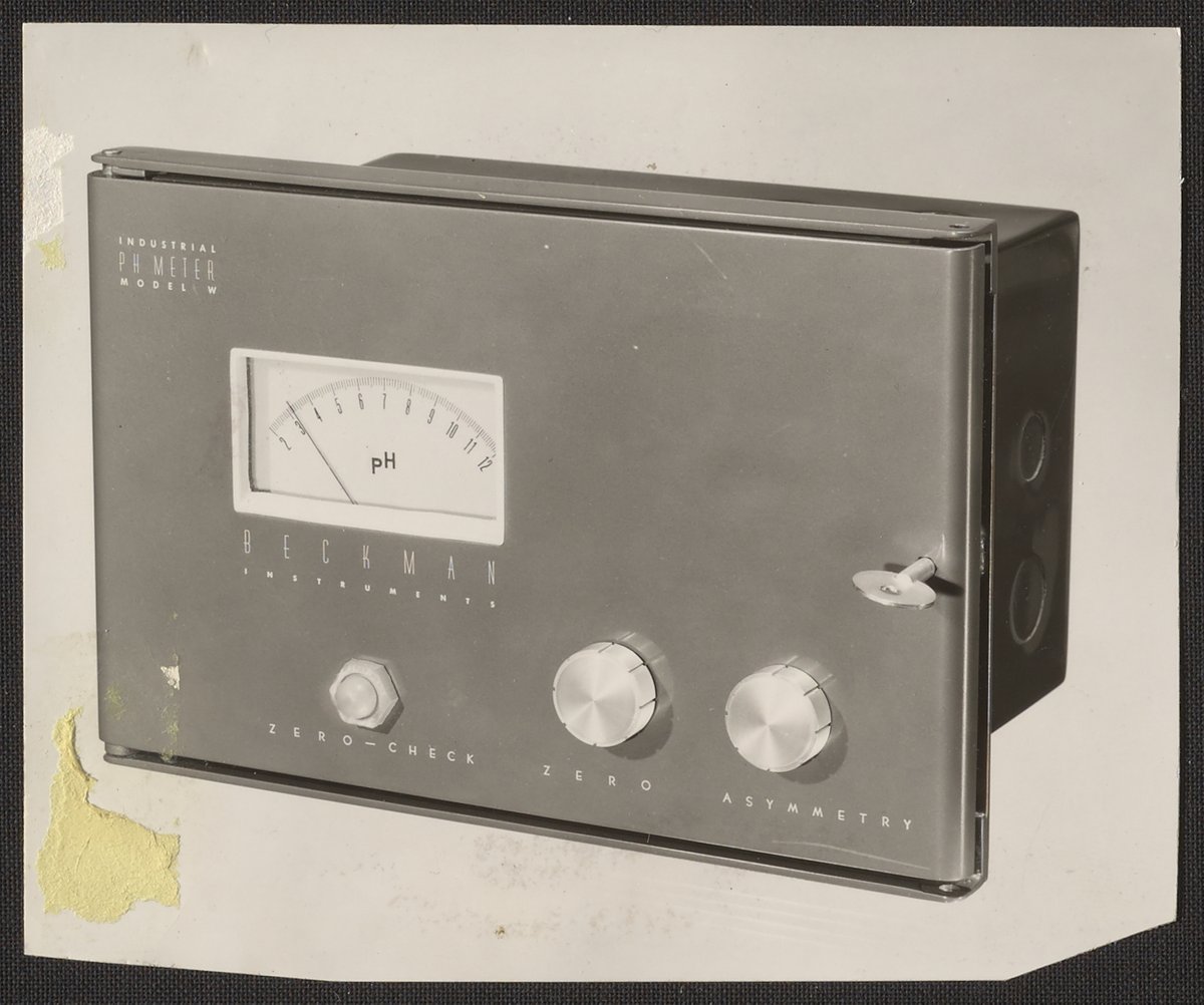 “Beckman Model W Industrial PH Meter,” 1950–1959. Beckman Historical Collection, Box 84. Science History Institute. Philadelphia. https://digital.sciencehistory.org/works/9306sz509.