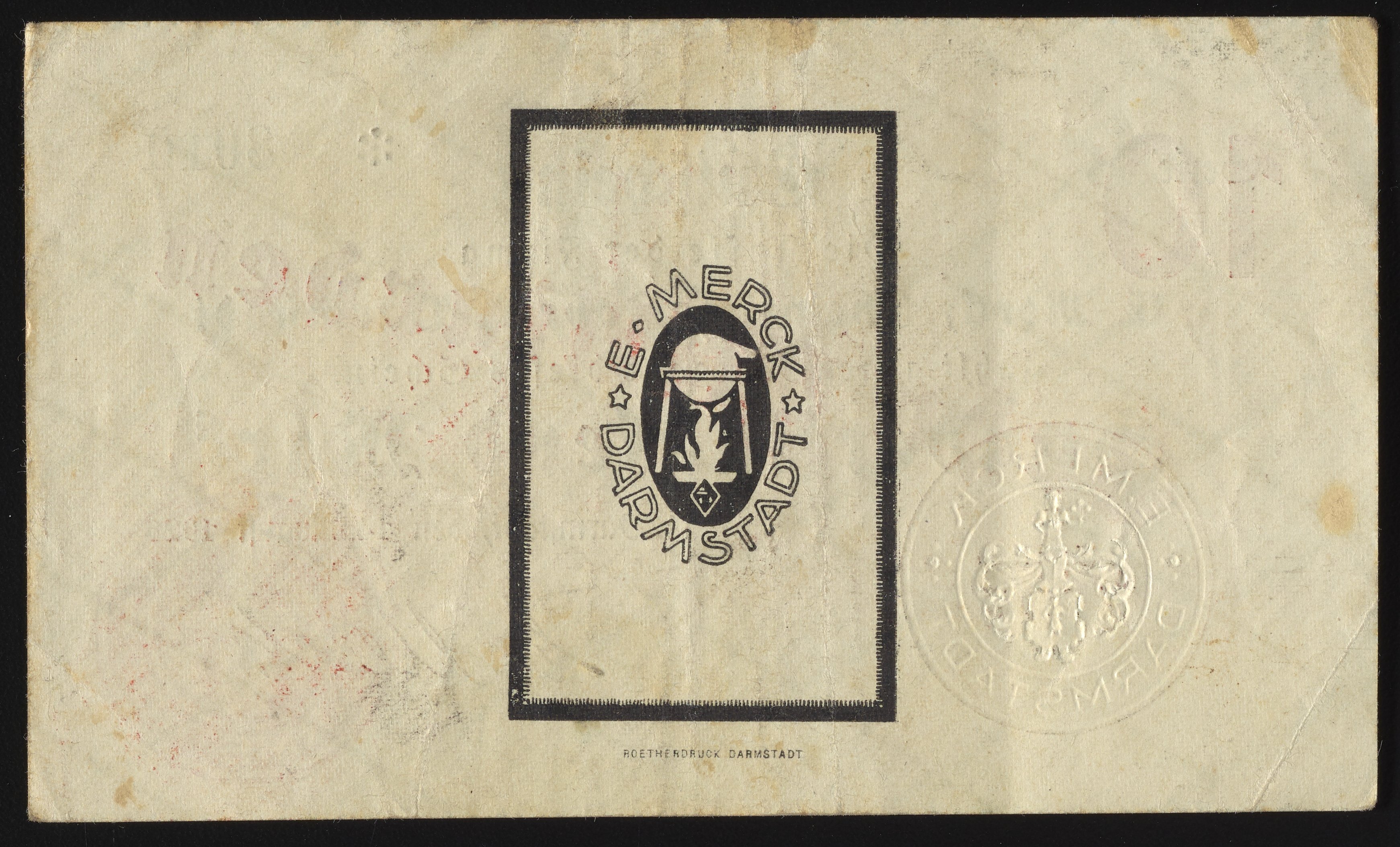 “E. Merck Zehn Milliarden/Hunderttausend Mark Gutschein.” Darmstadt, Germany: E. Merck (Firm), August 14, 1923. Robert J. Bauman collection. Science History Institute. Philadelphia. https://digital.sciencehistory.org/works/9593tv99z.