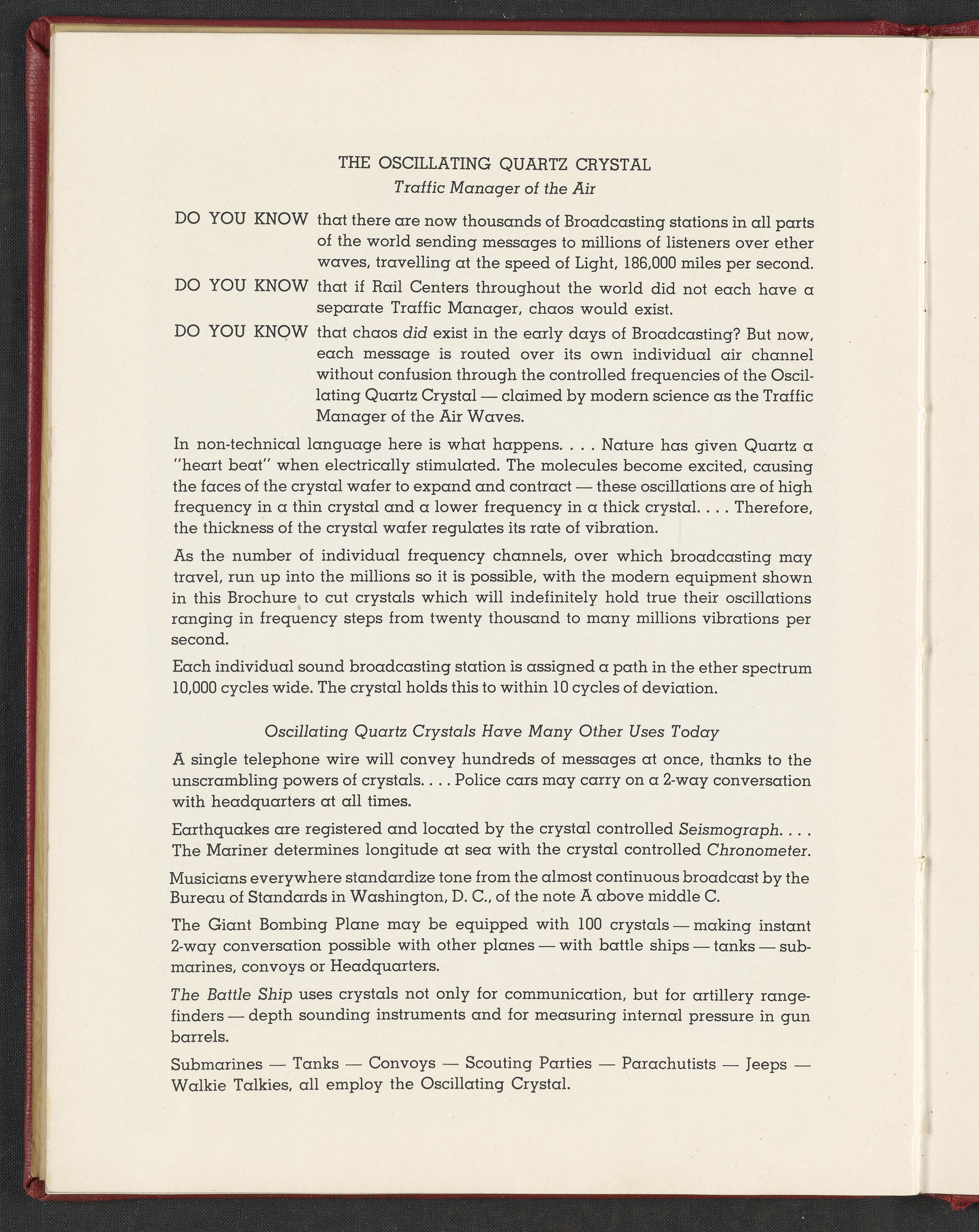 Strong, Herbert T. (Herbert Thompson)? “Krustallos, a Story of Quartz.” Bergen County, New Jersey, circa 1943. TK6565.O7 S76 1943. Science History Institute. Philadelphia. https://digital.sciencehistory.org/works/95lu2xo.