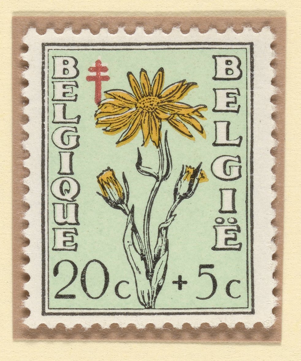 “Mountain Arnica (Arnica Montana) Postage Stamp, Belgium,” 1949. Witco Stamp Collection, Box 5. Science History Institute. Philadelphia. https://digital.sciencehistory.org/works/970q1wg.