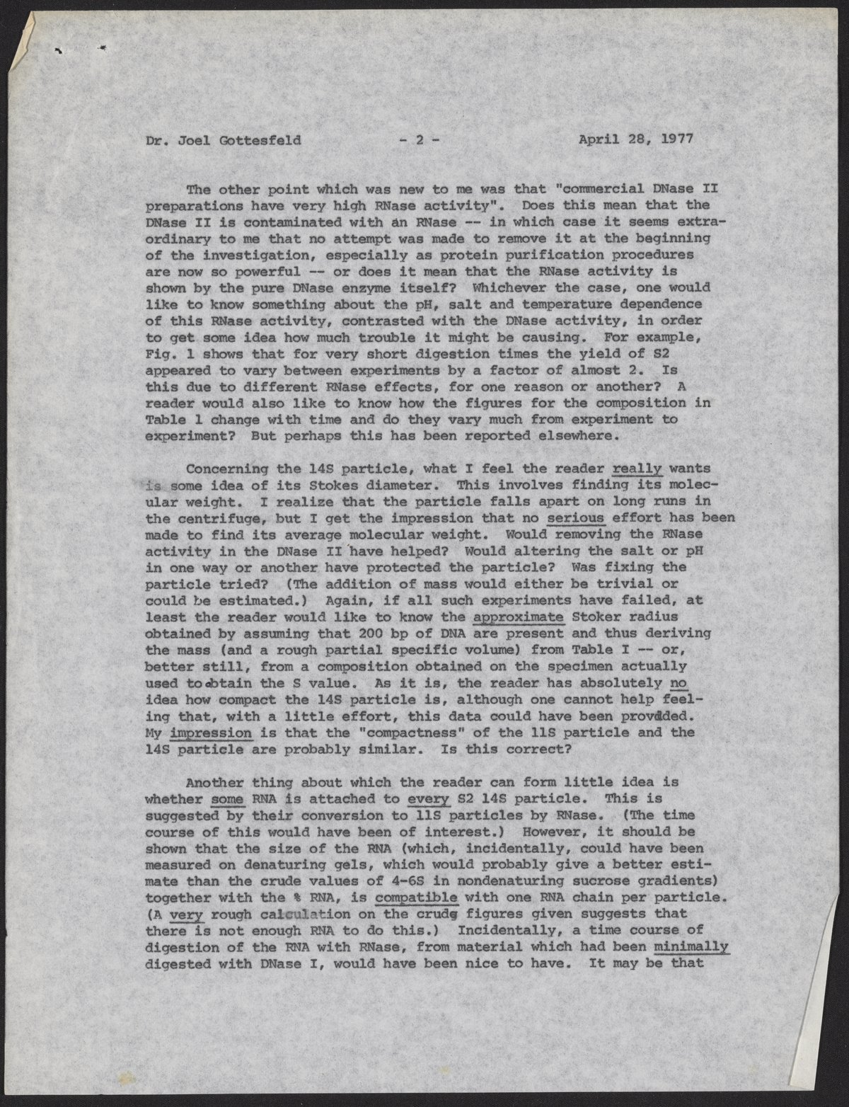 Letter from Francis Crick to Aaron Klug, April 29, 1977