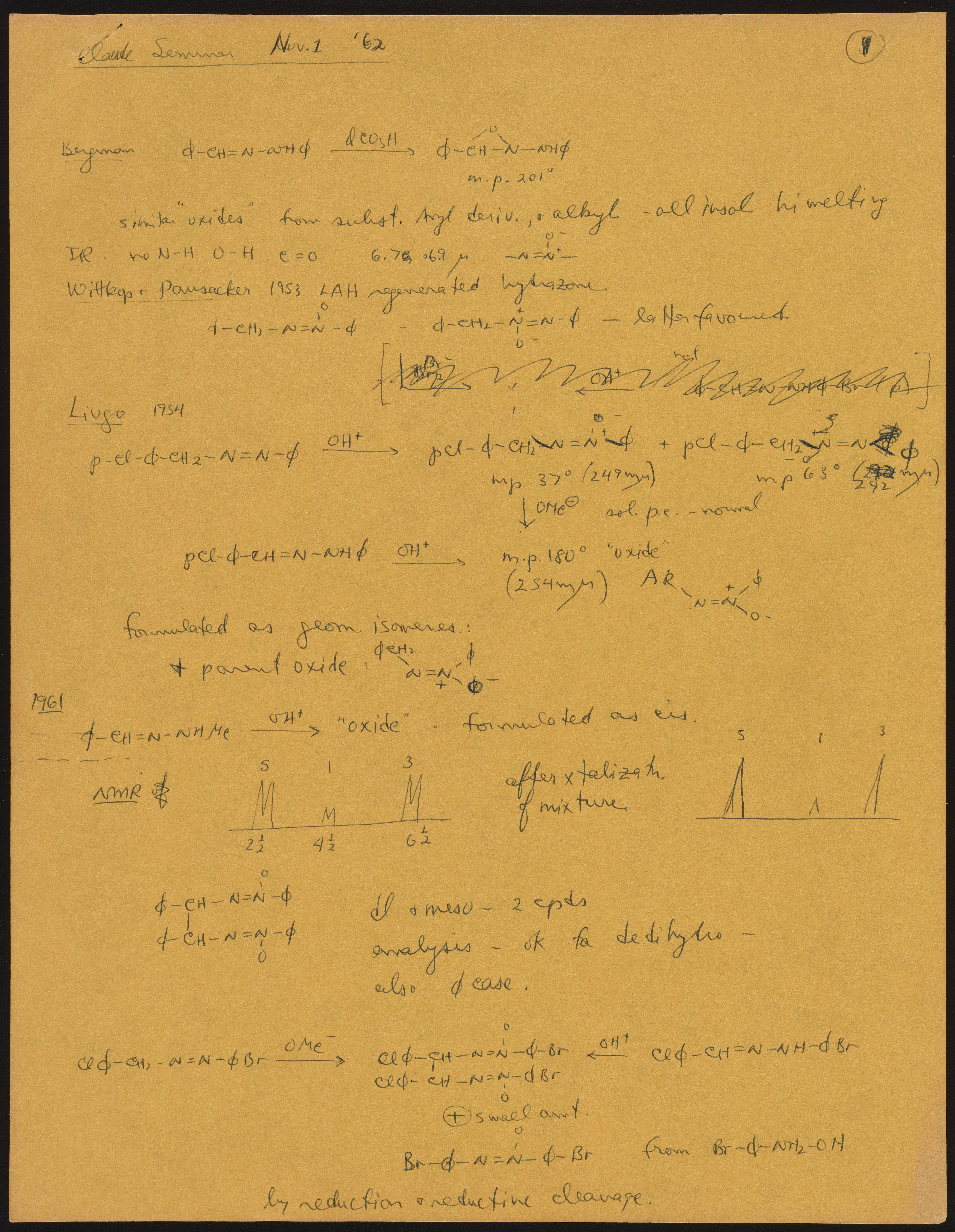 Kohler, Robert E. “R. B. (Robert Burns) Woodward Seminar Entitled ‘Claude Seminar,’” circa 1959–1966. Robert E. Kohler Papers, Folder 2. Science History Institute. Philadelphia. https://digital.sciencehistory.org/works/9c67wn91h.