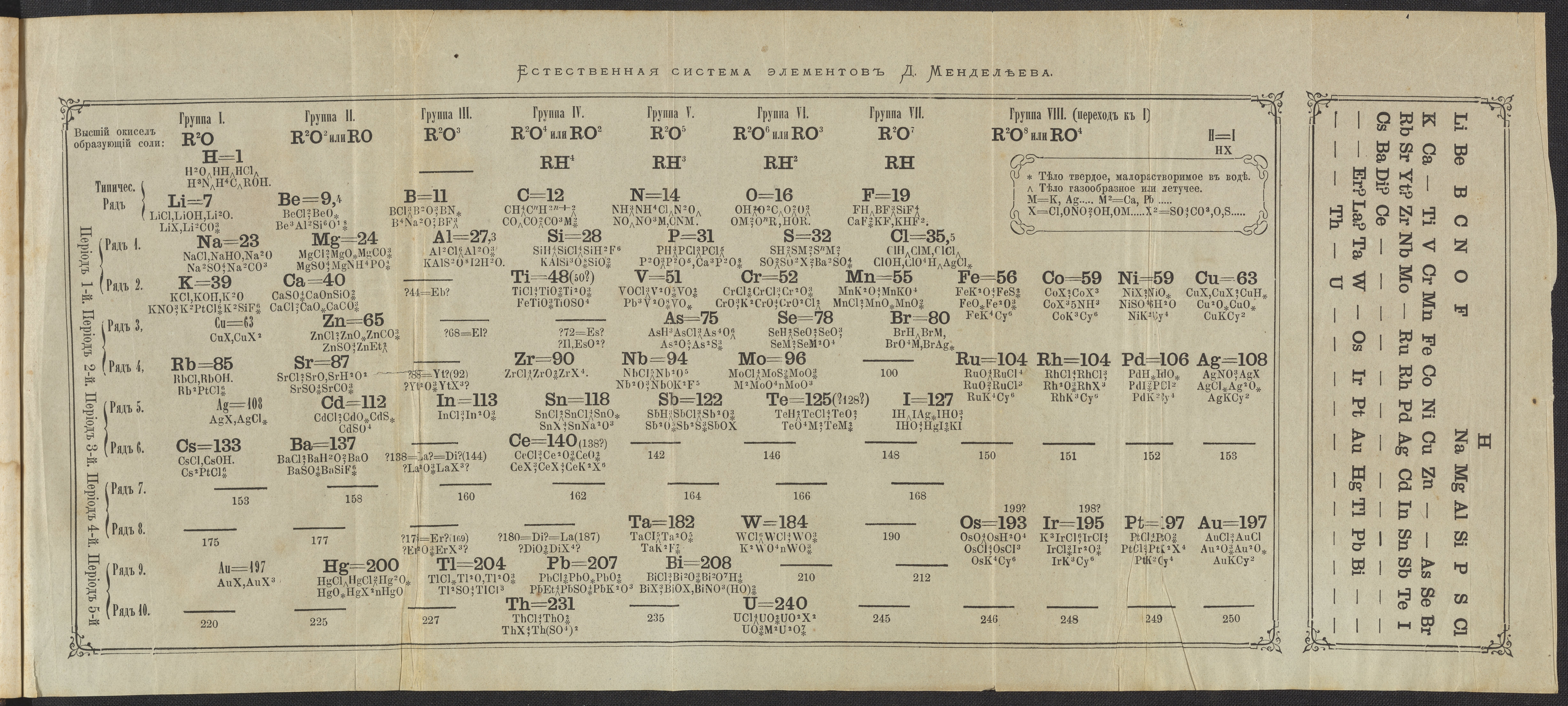 Mendeleyev's Periodic Table of the Elements