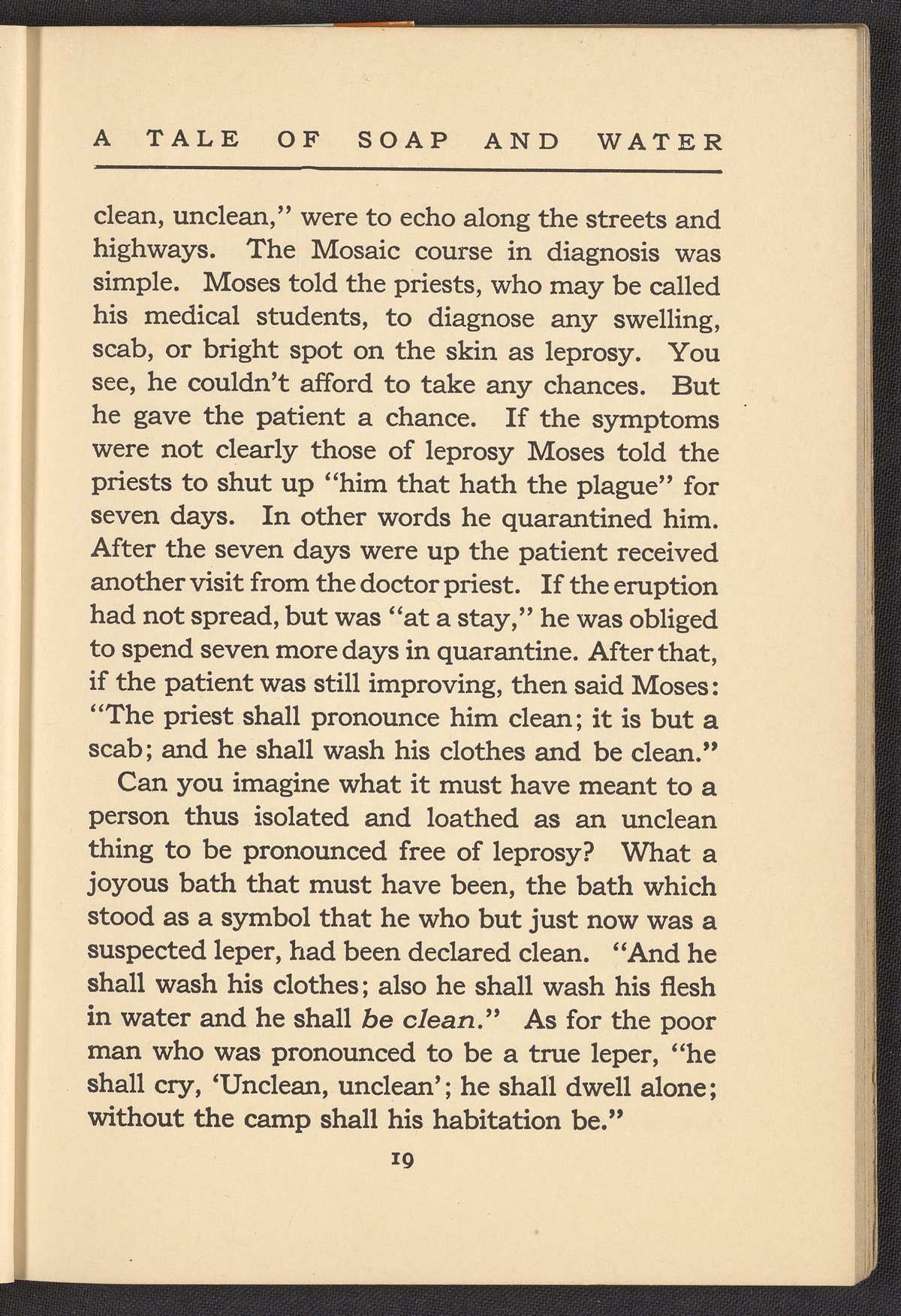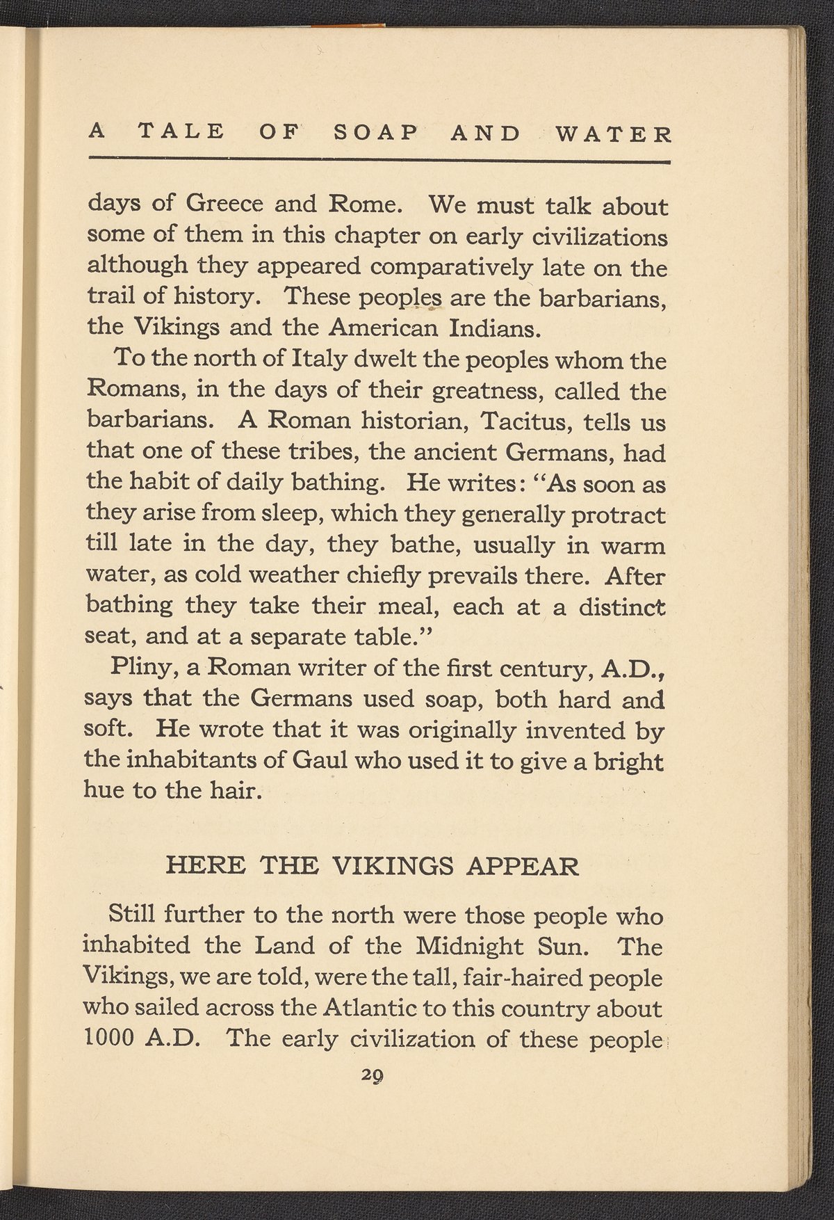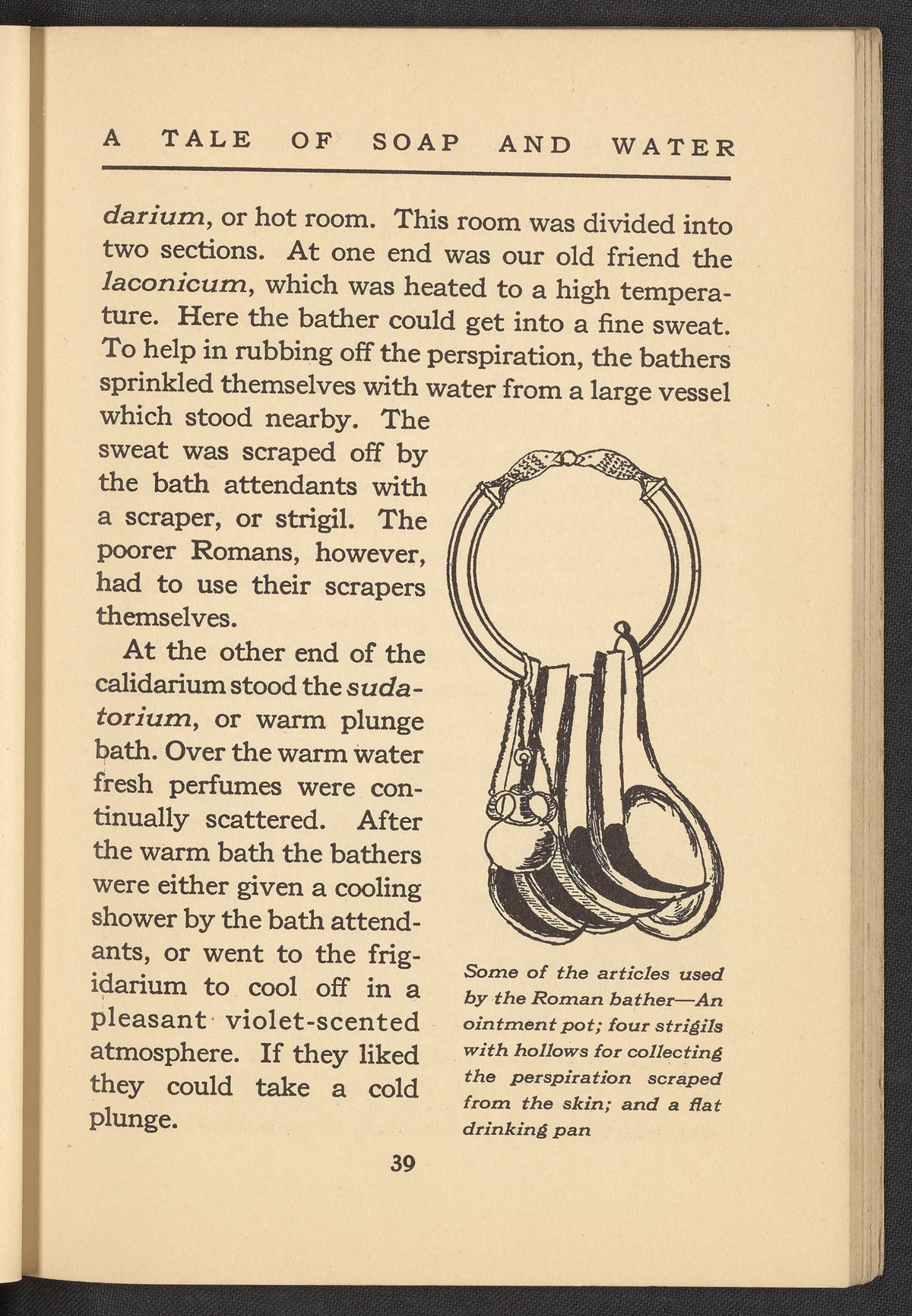 Small JPG1200 x 1626px — 471 KBFull-sized JPG2286 x 3098px — 1.5 MBOriginal fileTIFF — 2286 x 3098px — 20.3 MBA history of bathing and personal hygiene from the prehistoric age to present day. The author describes the religious and cultural significance of bathing around the world and describes methods of bathing used by various groups of people, from ancient Egyptians to early American settlers. The work concludes with a description of the chemistry of modern soap and the value of cleanliness among modern Americans.