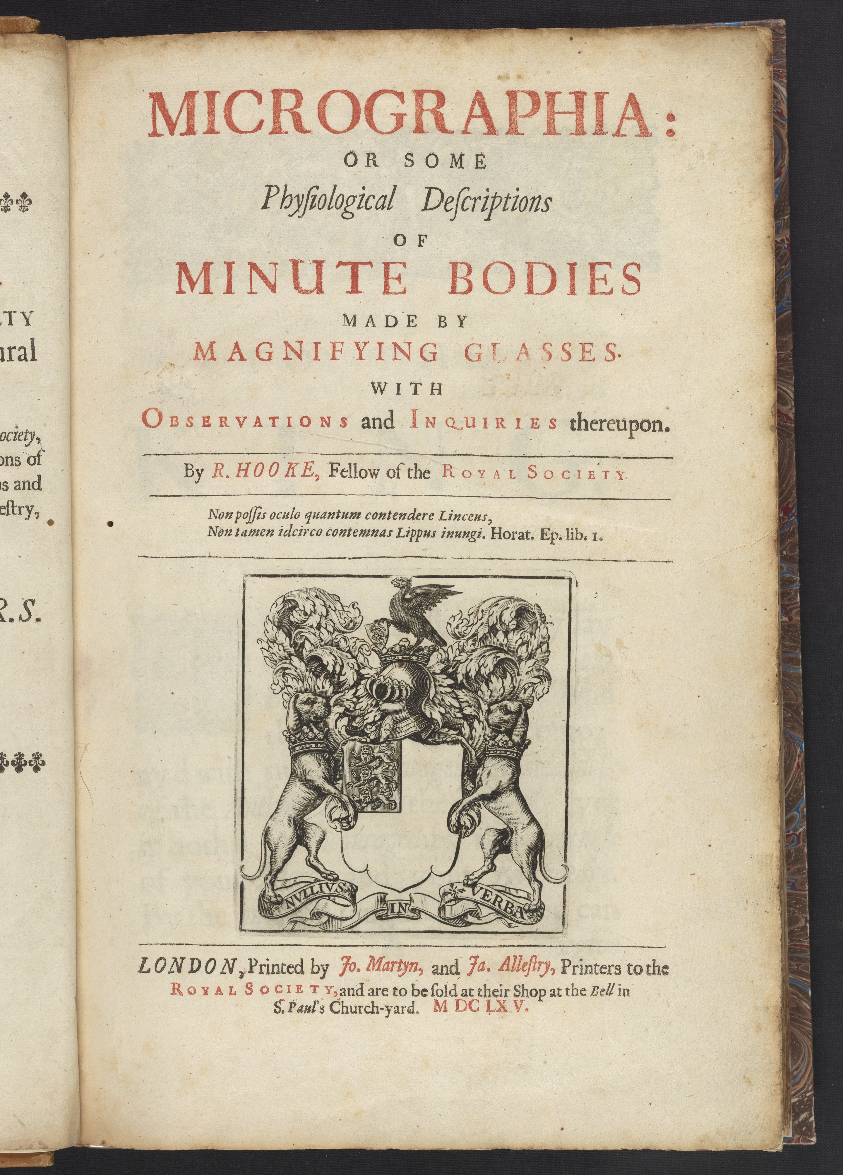 Hooke, Robert. Micrographia : or, Some Physiological Descriptions of Minute Bodies Made by Magnifying Glasses. With Observations and Inquiries Thereupon. London, England: J. Allestry, 1665. https://digital.sciencehistory.org/works/9g54xj51s.
