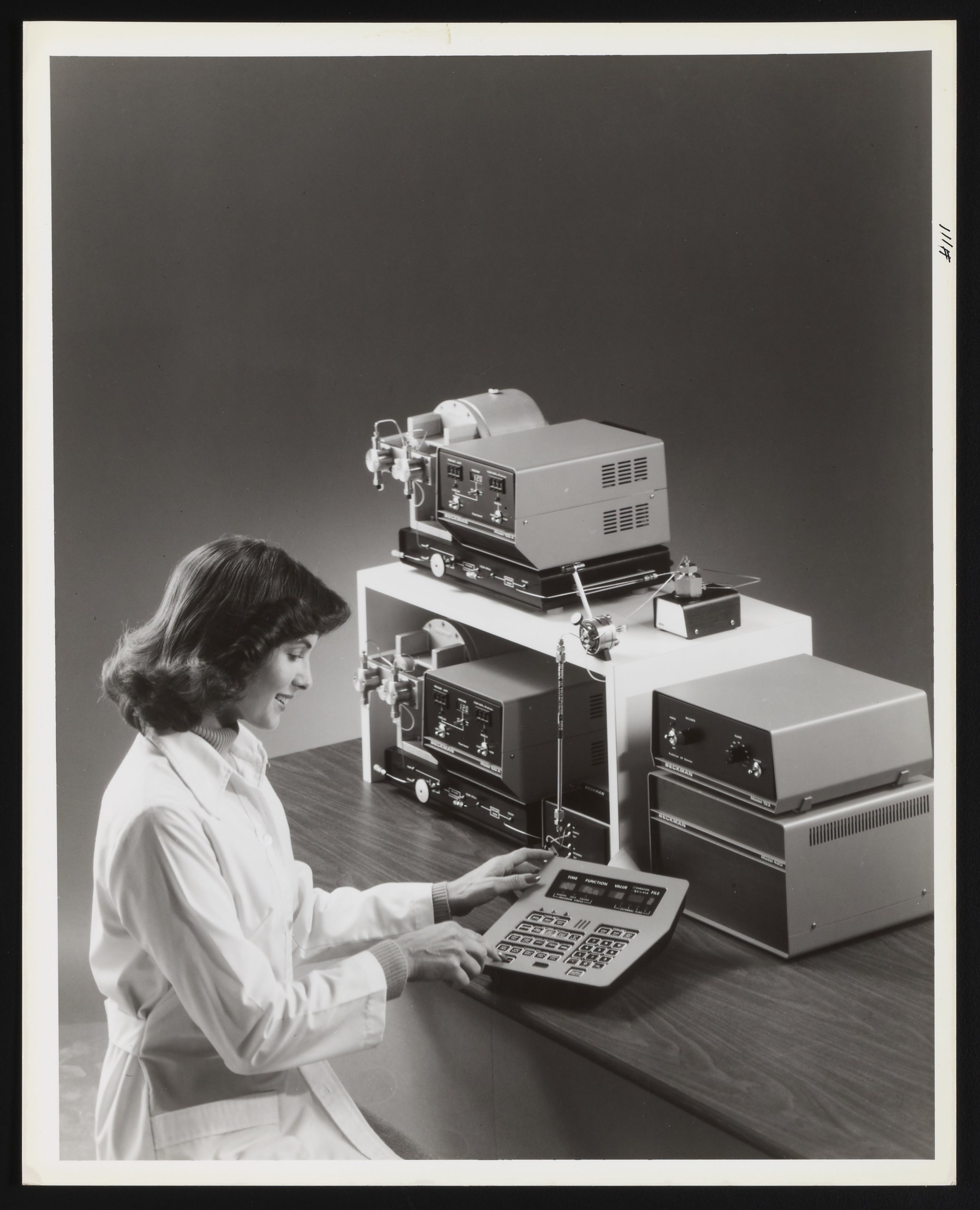 “Woman Using Beckman Liquid Chromatograph,” n.d. Beckman Historical Collection, Box 81. Science History Institute. Philadelphia. https://digital.sciencehistory.org/works/9k41zd62b.