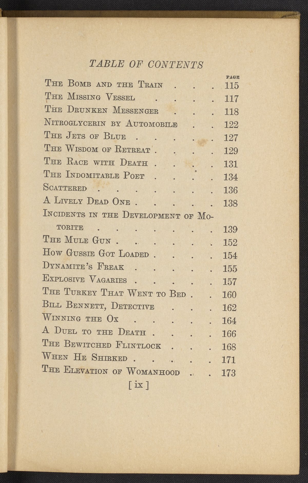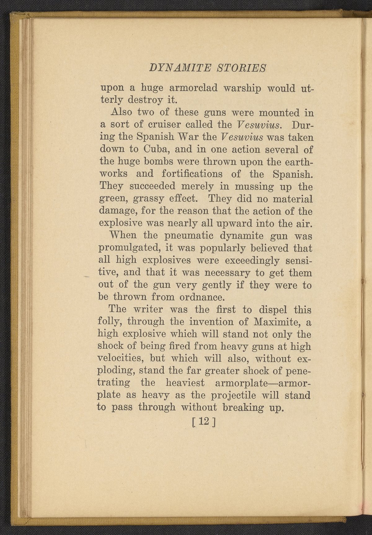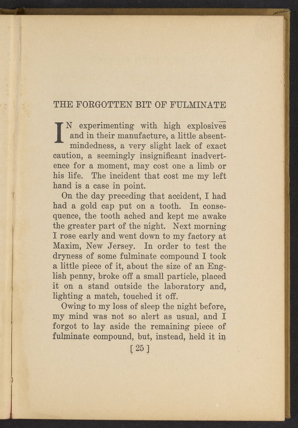 Maxim, Hudson. “Dynamite Stories and Some Interesting Facts about Explosives.” New York, New York: Hearst's International Library Company, 1916. TP270.5 M39 1916. Science History Institute. Philadelphia. https://digital.sciencehistory.org/works/9m9dr7d.