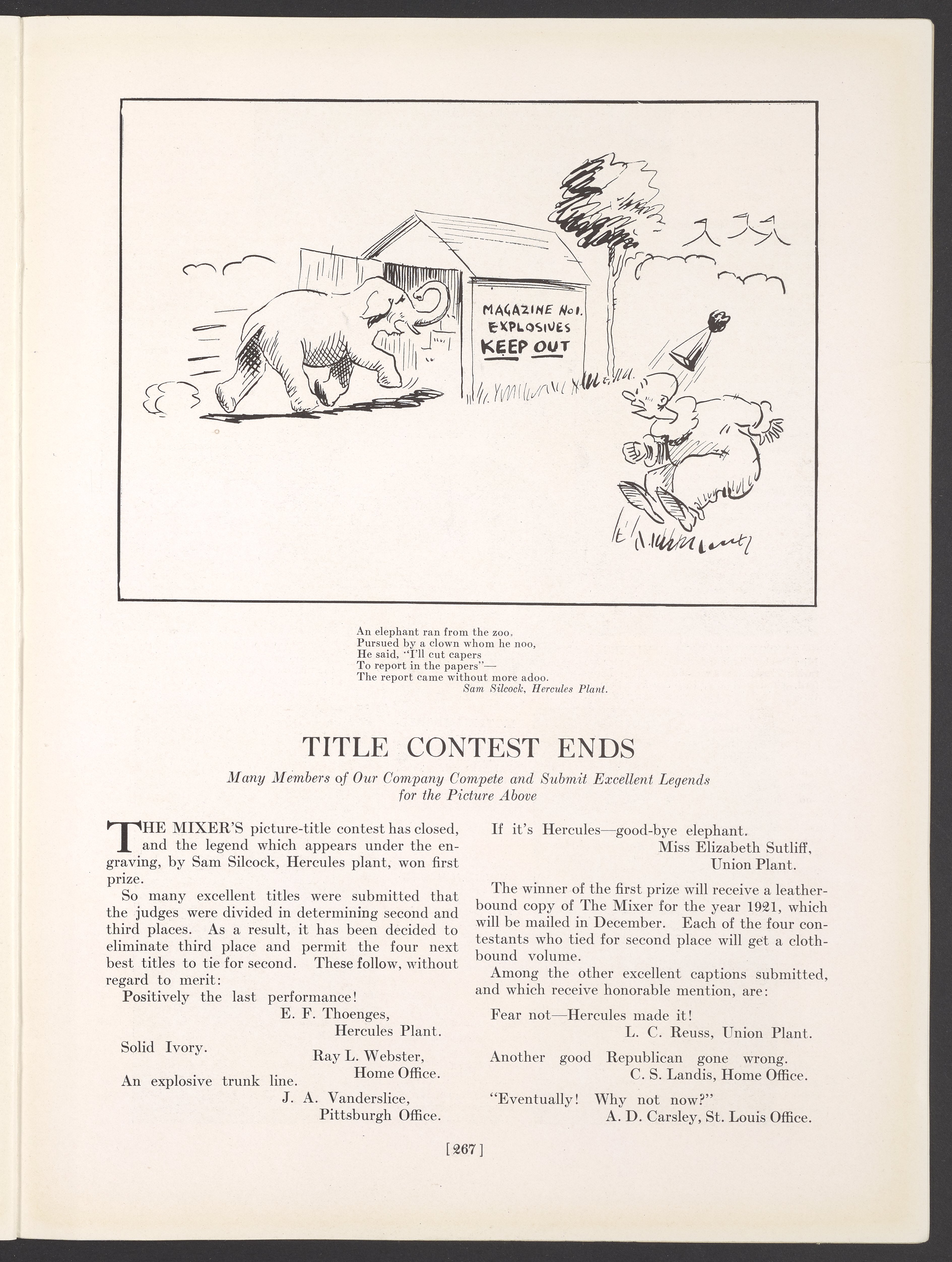 Small JPG1200 x 1586px — 387 KBLarge JPG2880 x 3806px — 2.7 MBFull-sized JPG3777 x 4992px — 4.5 MBOriginal fileTIFF — 3777 x 4992px — 54.0 MBOctober 1921 issue of The Hercules Mixer, the Hercules Powder Company's in-house publication that provided both historical and technical information and also offered a glimpse of employees' day-to-day lives at the company.