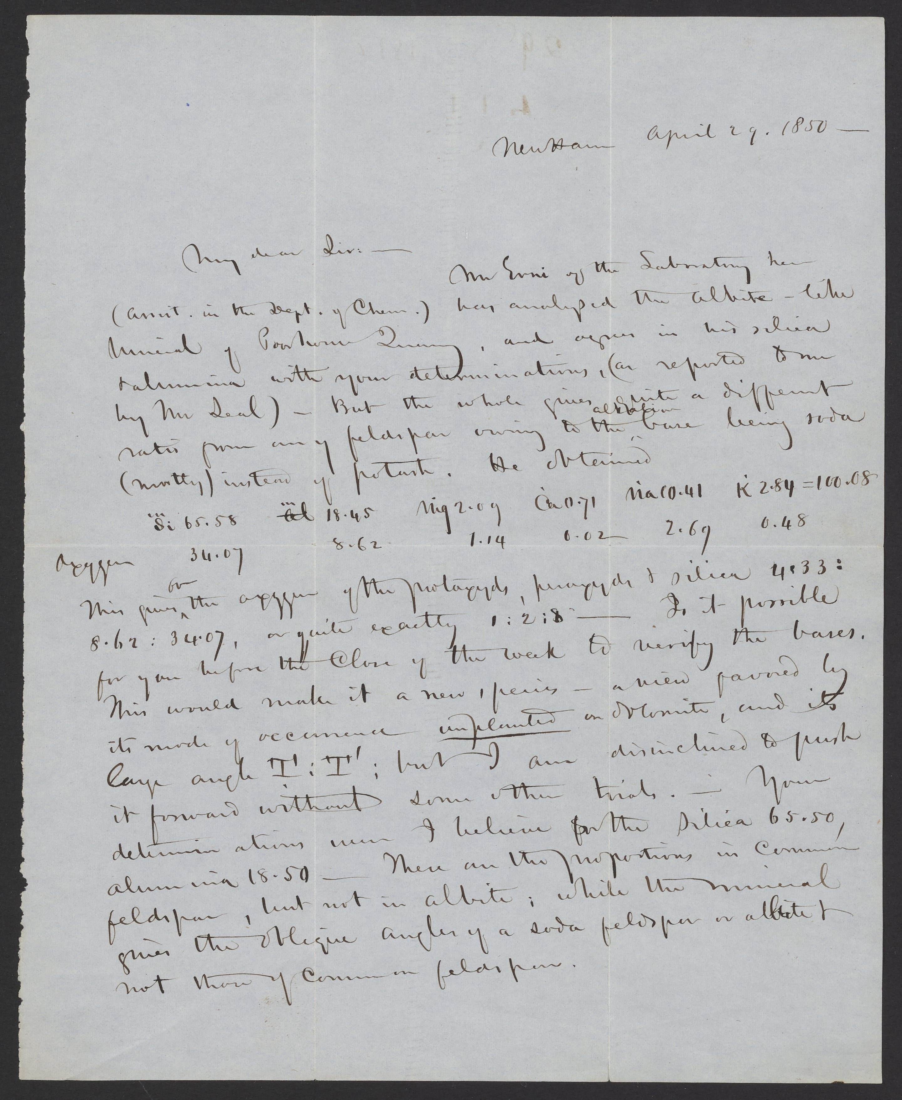 “Letter from an Unidentified Sender to James Curtis Booth,” April 29, 1850. Papers of James Curtis Booth, Box 1, Folder 6. Science History Institute. Philadelphia. https://digital.sciencehistory.org/works/9o5qm6p.