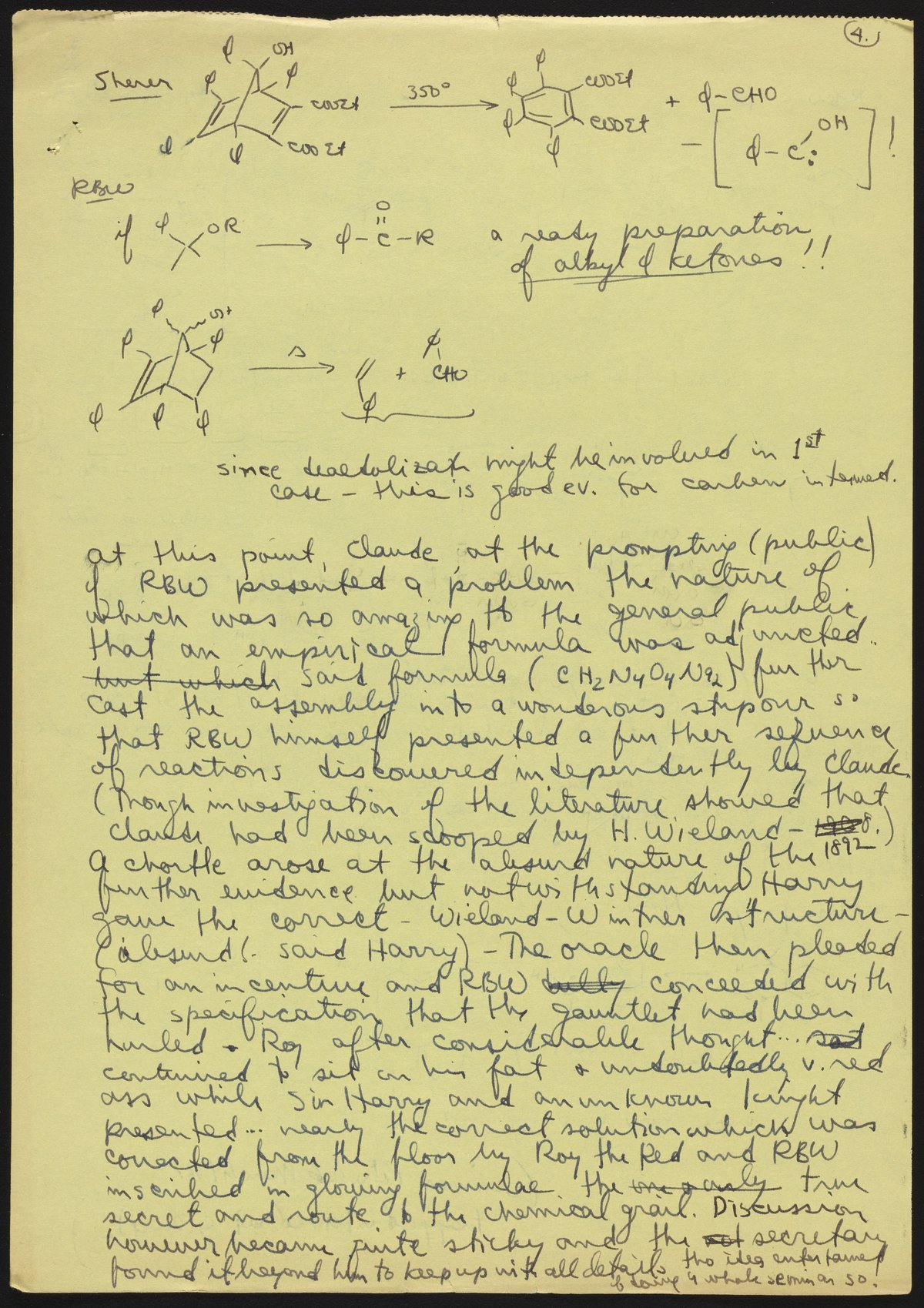 Kohler, Robert E. “R. B. (Robert Burns) Woodward Seminar Entitled ‘Radiolysis of Aryl Alkyl Ketones.’” Notes from R. B. (Robert Burns) Woodward's Seminars, circa 1959–1966. Folder 2. Science History Institute. Philadelphia. https://digital.sciencehistory.org/works/9p290b120.