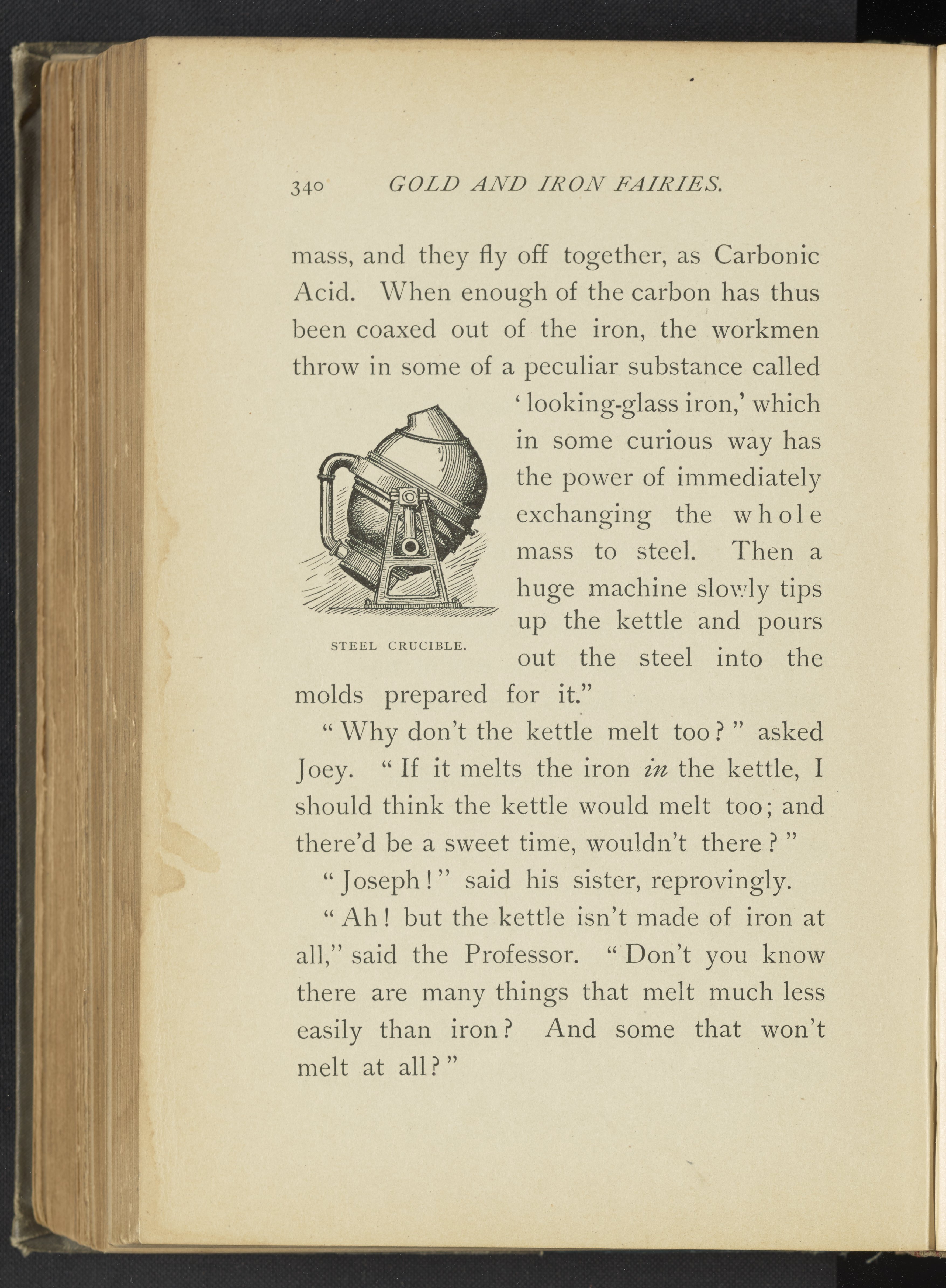 Meyer, Lucy Rider. “Steel Crucible.” Real Fairy Folks, or, Fairy Land of Chemistry: Explorations in the World of Atoms. Boston, Massachusetts: Lothrop Publishing Company, 1887. https://digital.sciencehistory.org/works/9s161661z.