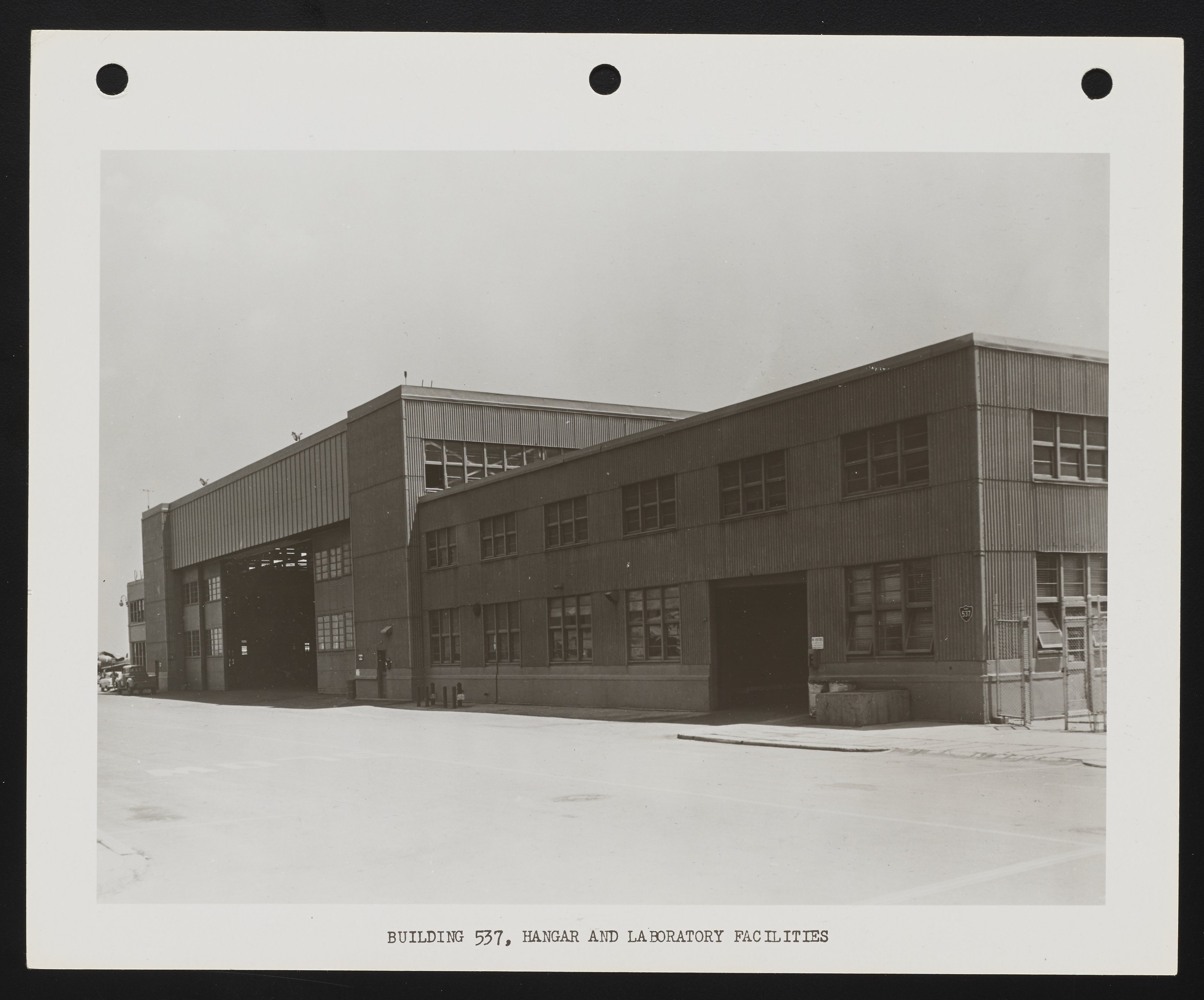 Naval Air Material Center, and United States. Navy. “Building 537, Hangar and Laboratory Facilities,” circa 1950. Photographs from the Papers of J. Hartley Bowen, Box 1. Science History Institute. Philadelphia. https://digital.sciencehistory.org/works/9w032305v.
