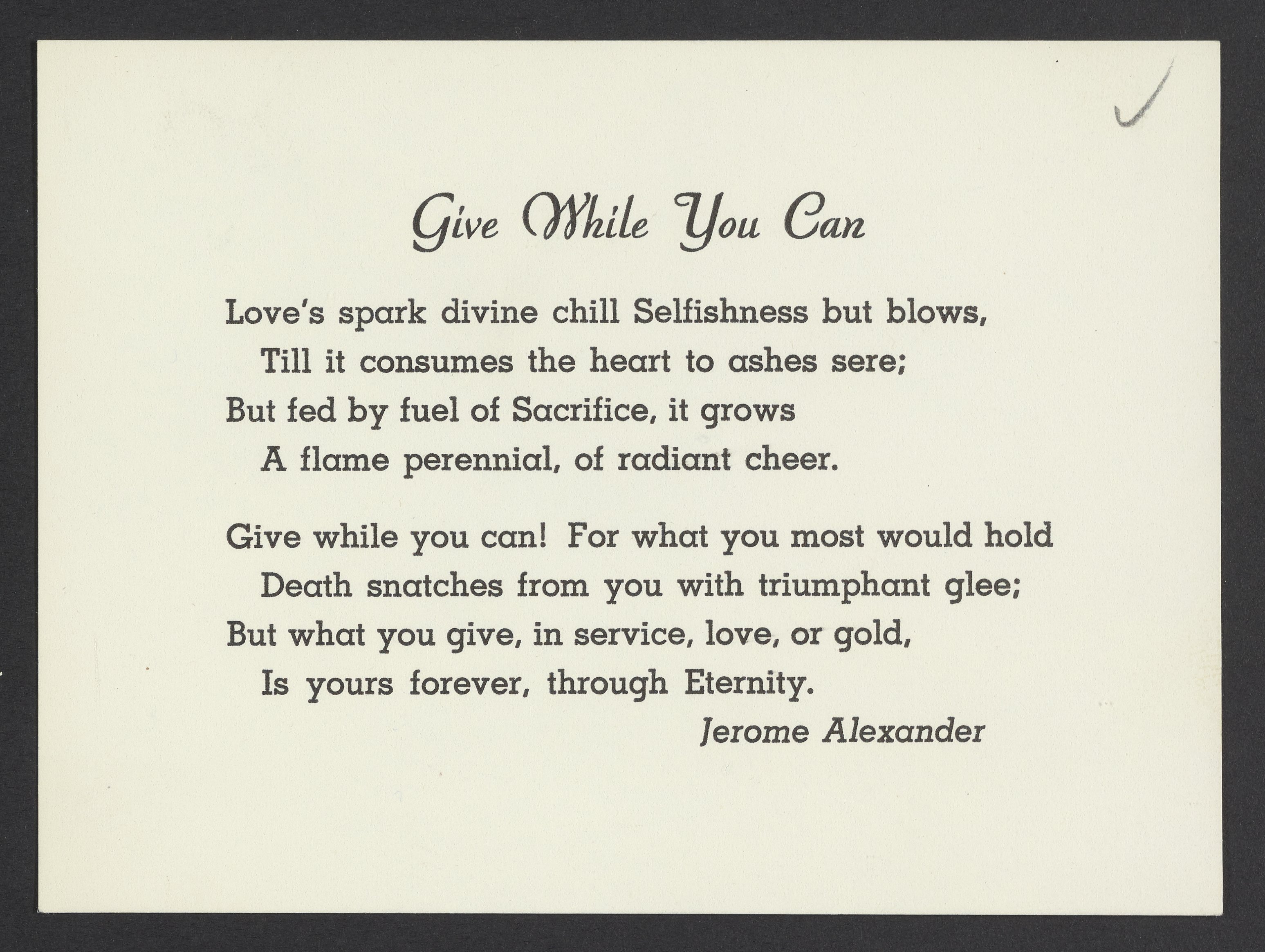 Letter of condolence from Jerome Alexander to Max Bredig