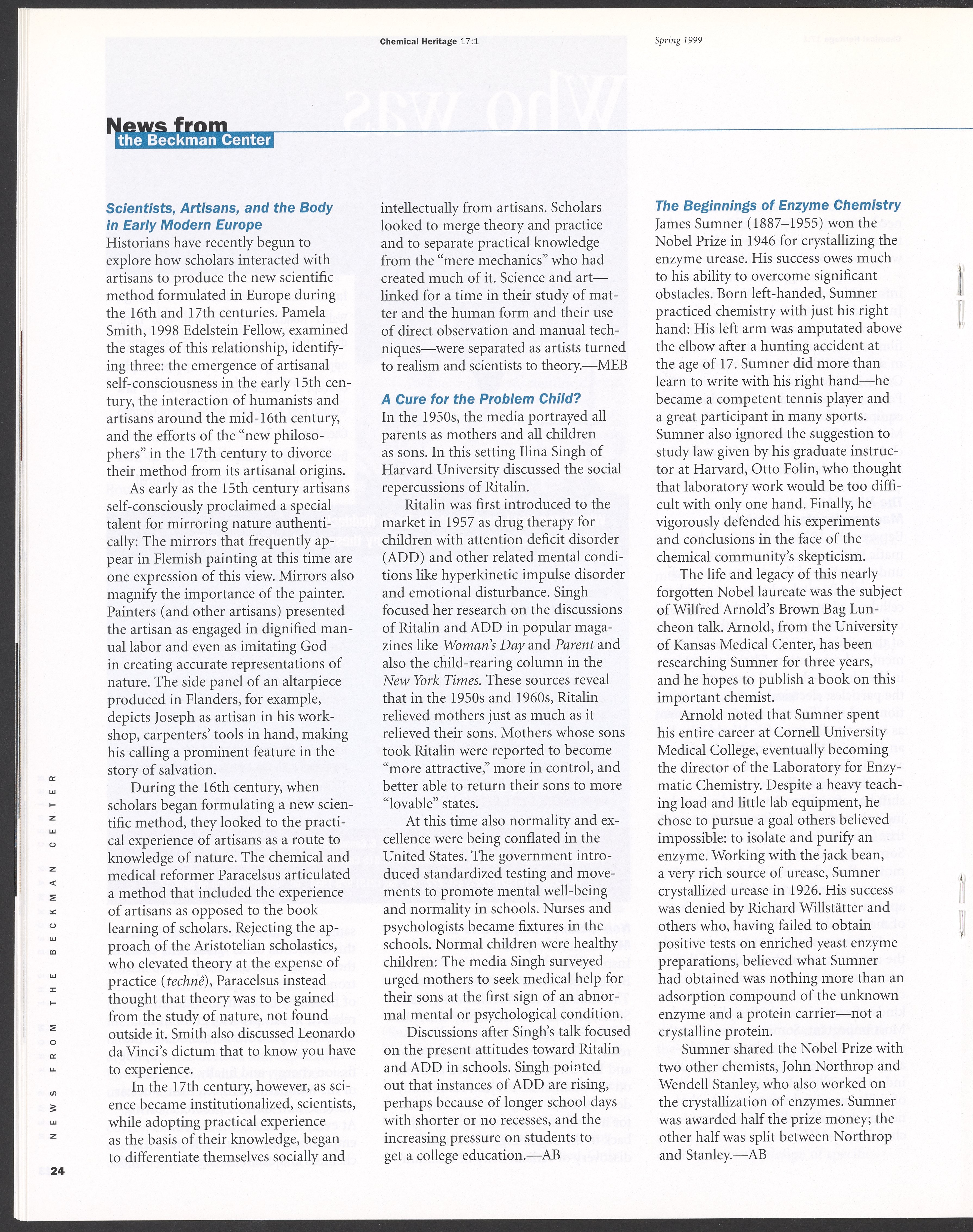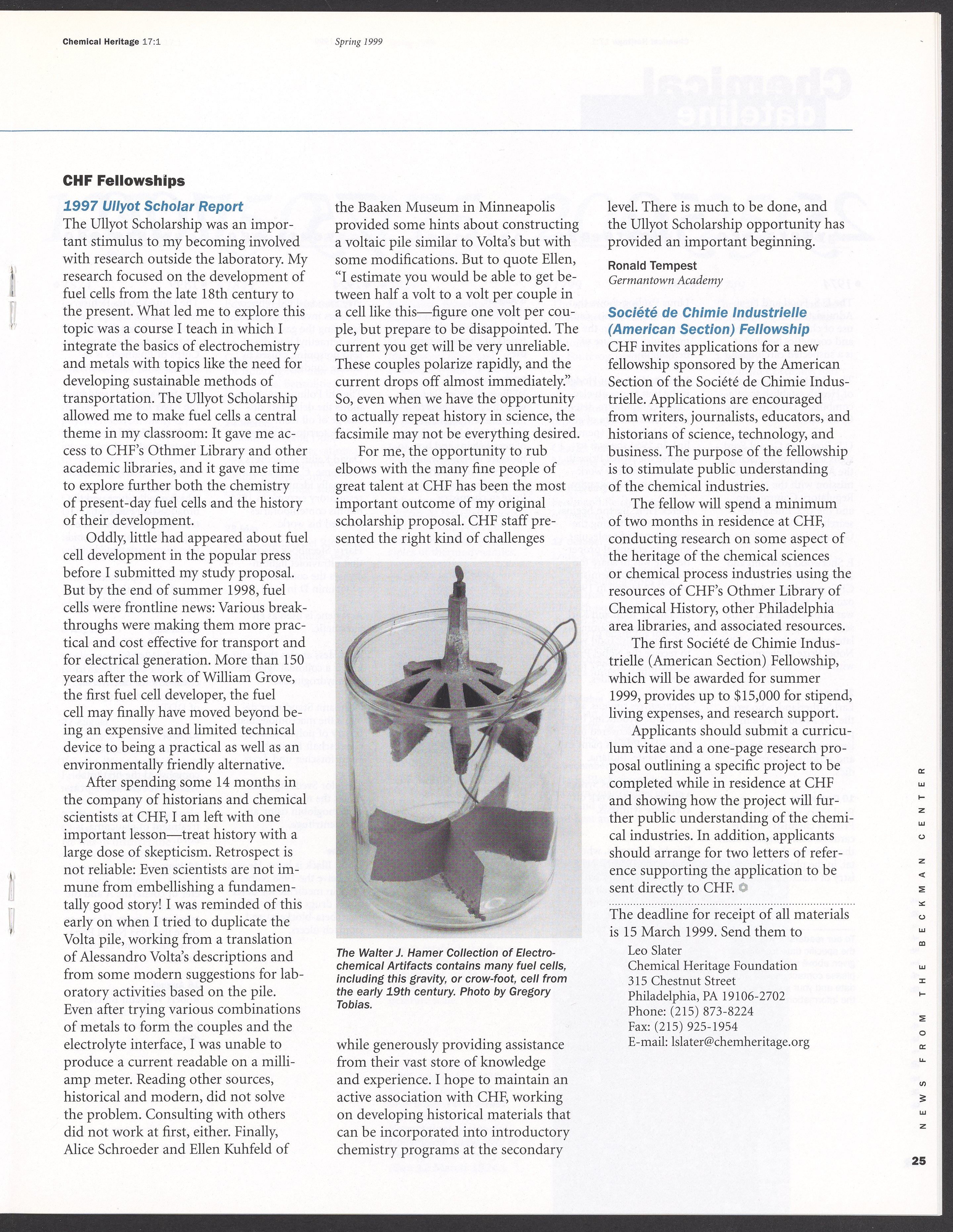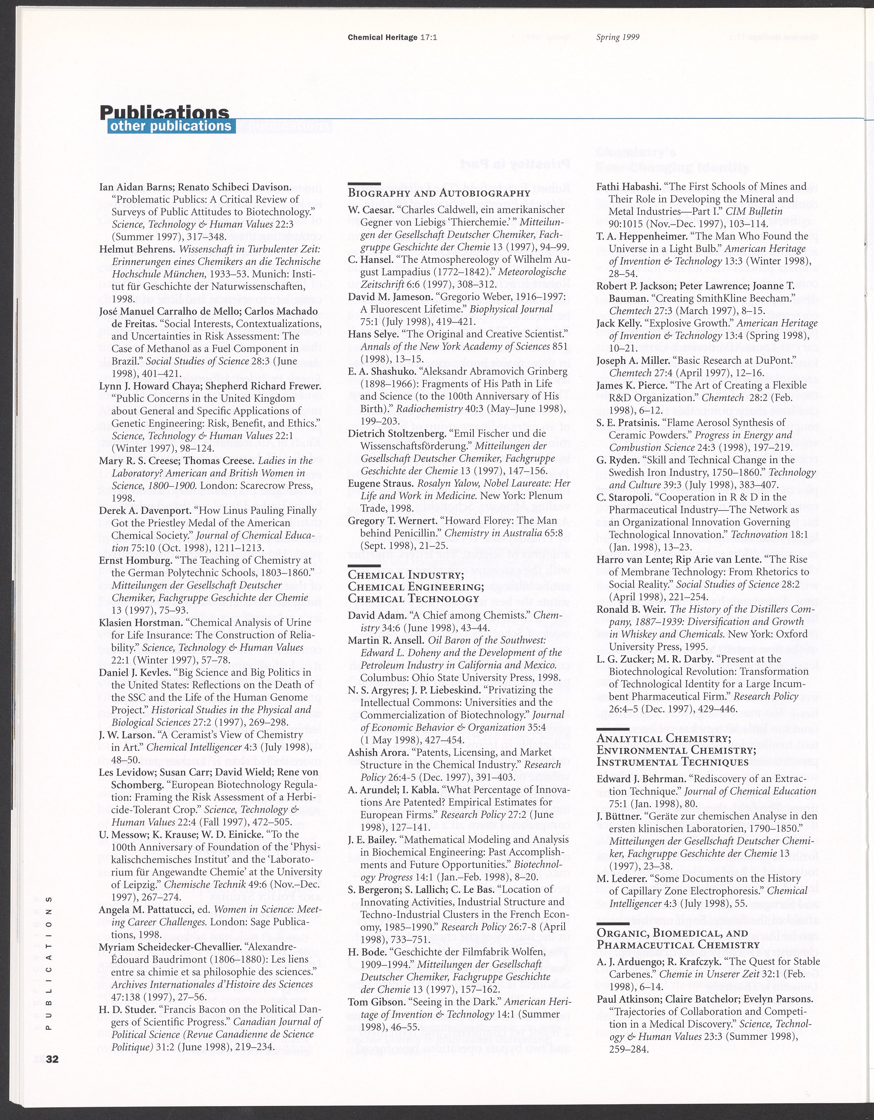 Chemical Heritage, Volume 17 Number 1