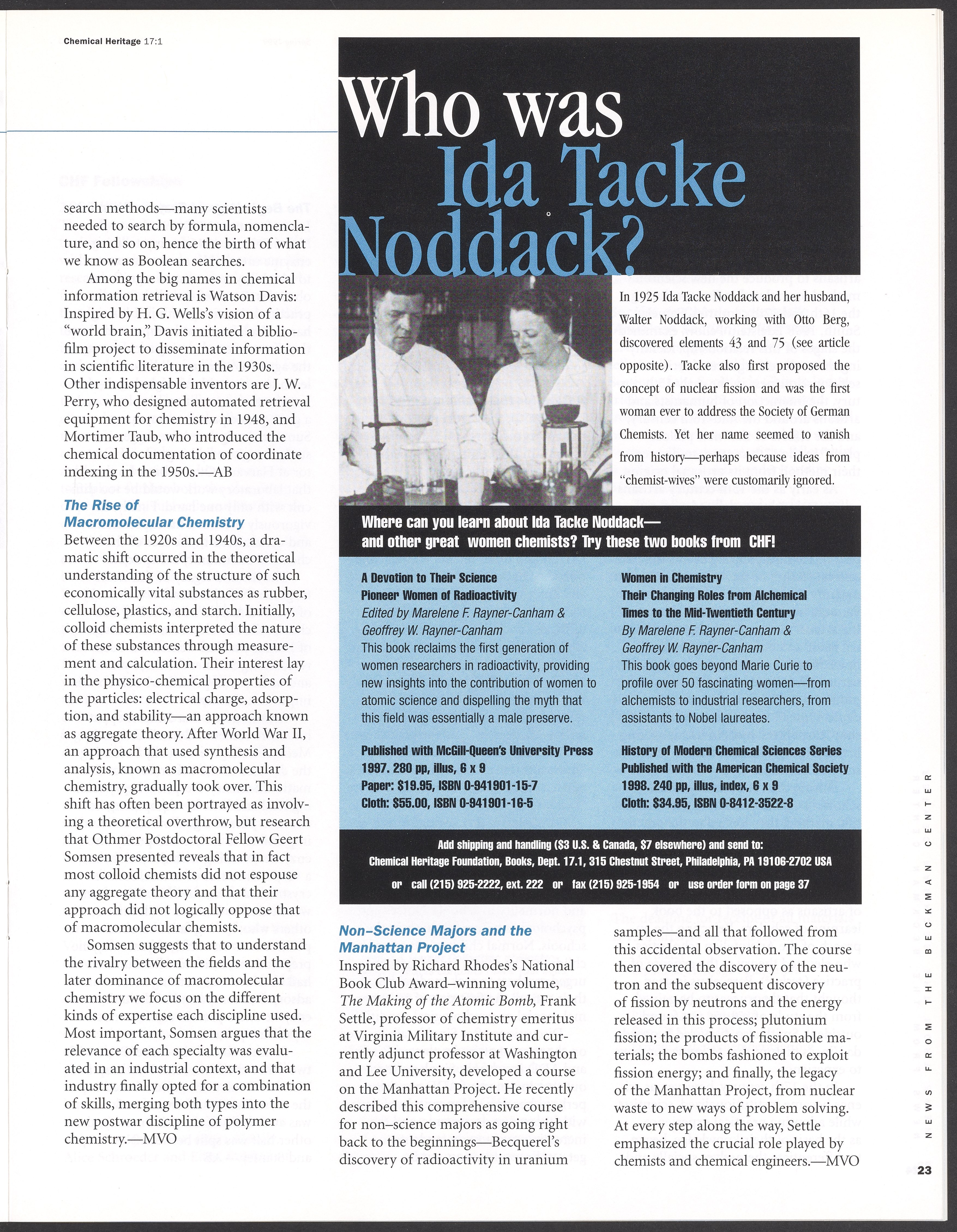 “Chemical Heritage, Volume 17 Number 1.” Philadelphia, Pennsylvania: Chemical Heritage Foundation, 1999. 099C001. Science History Institute. Philadelphia. https://digital.sciencehistory.org/works/9xpzix5.