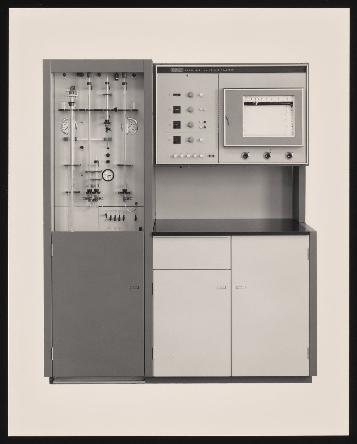 Illig, Russell. “Spinco Model 120C Amino Acid Analyzer,” 1960–1969. Beckman Historical Collection, Box 59, Folder 98. Science History Institute. Philadelphia. https://digital.sciencehistory.org/works/9z902z921.
