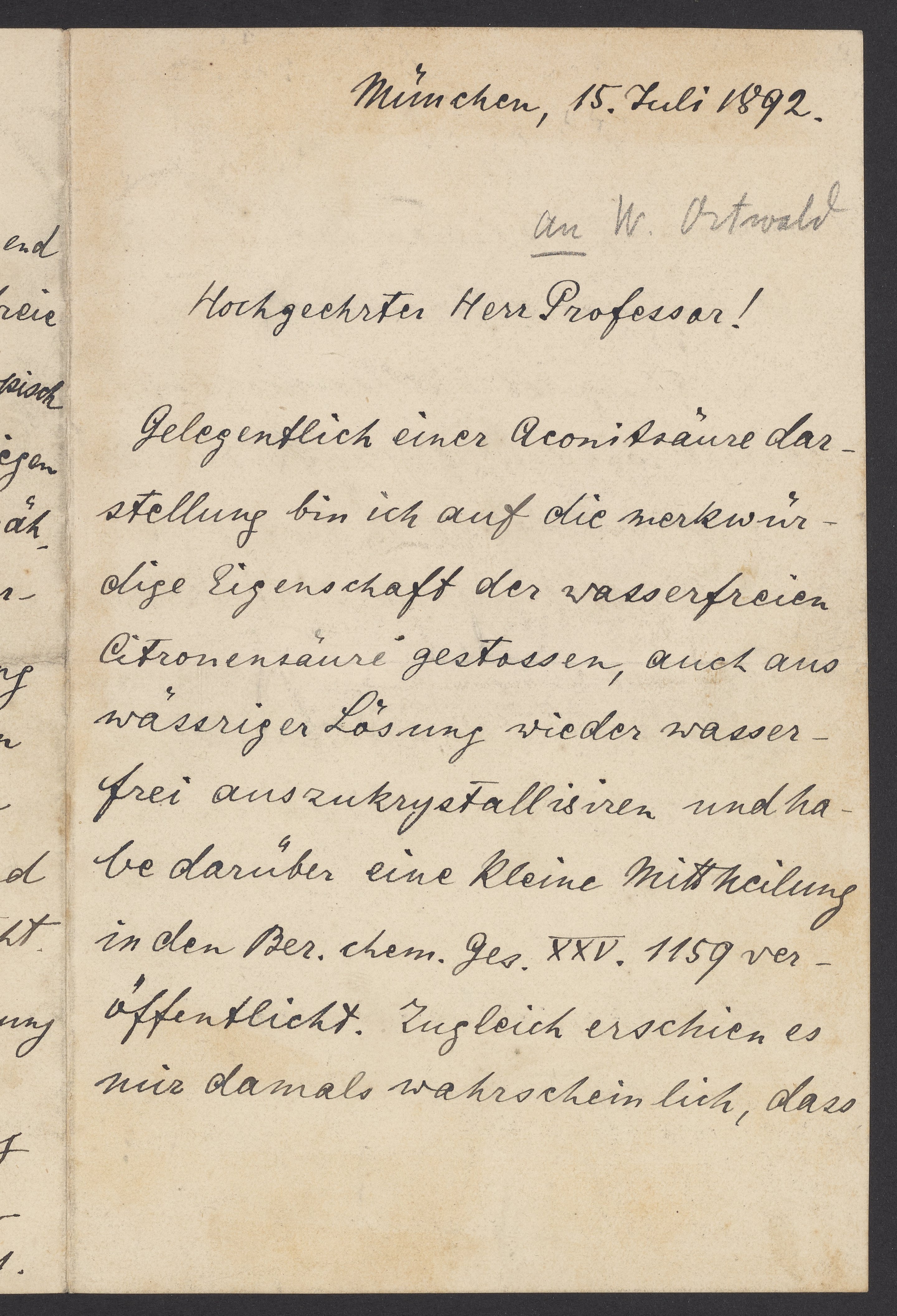 Letter from Eduard Buchner to Wilhelm Ostwald, July 1892