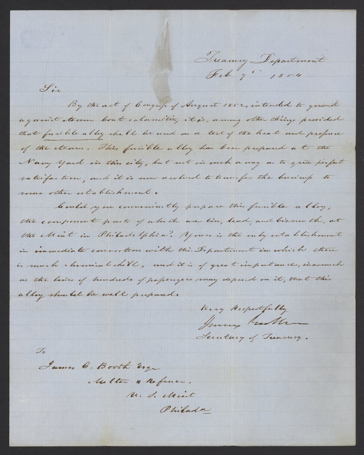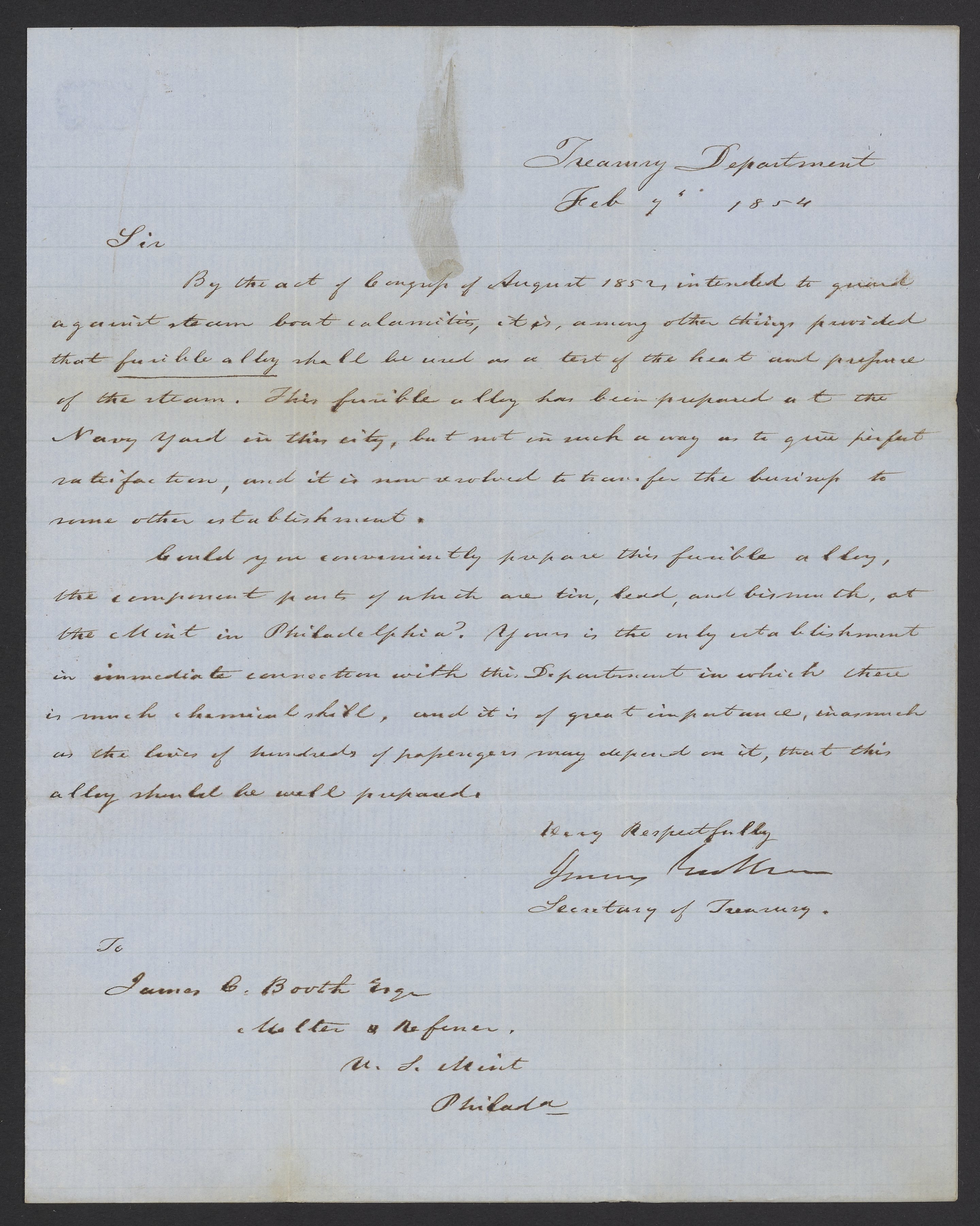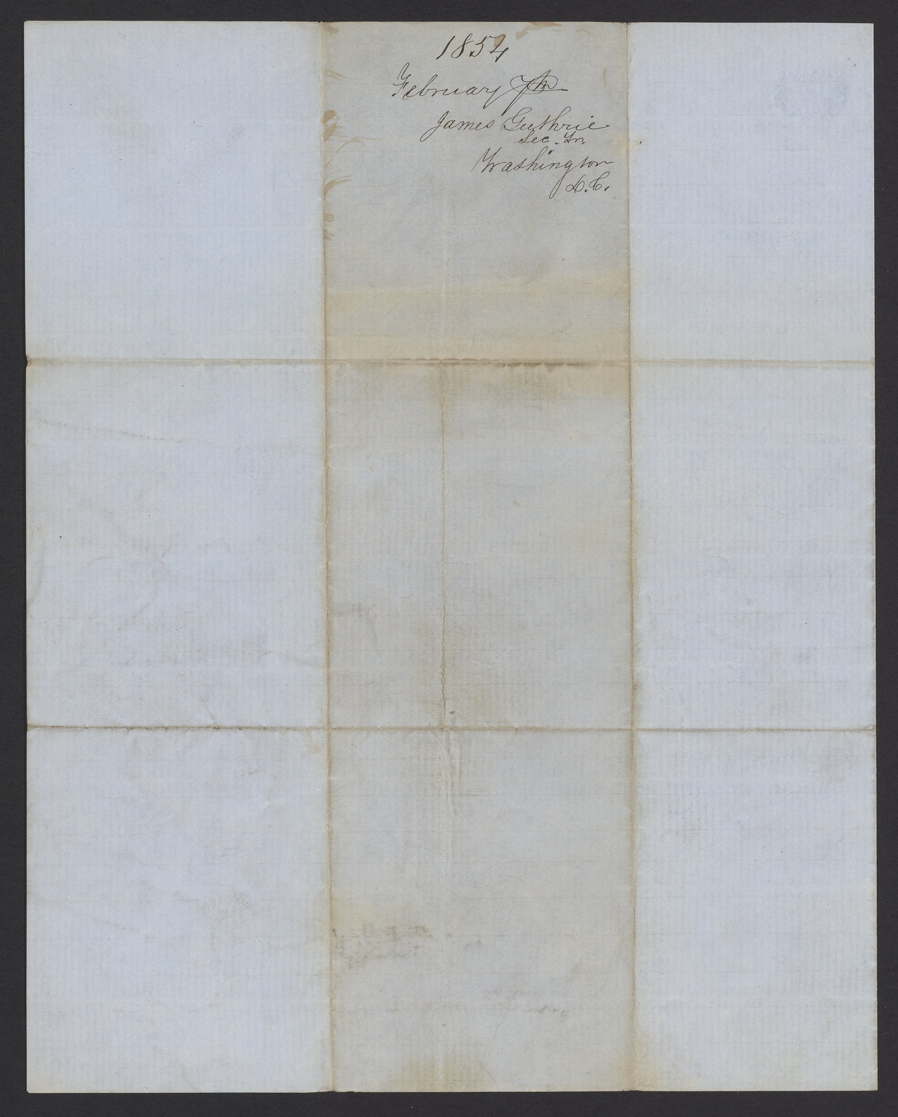 Letter from James B. Guthrie to James Curtis Booth, February 7, 1854