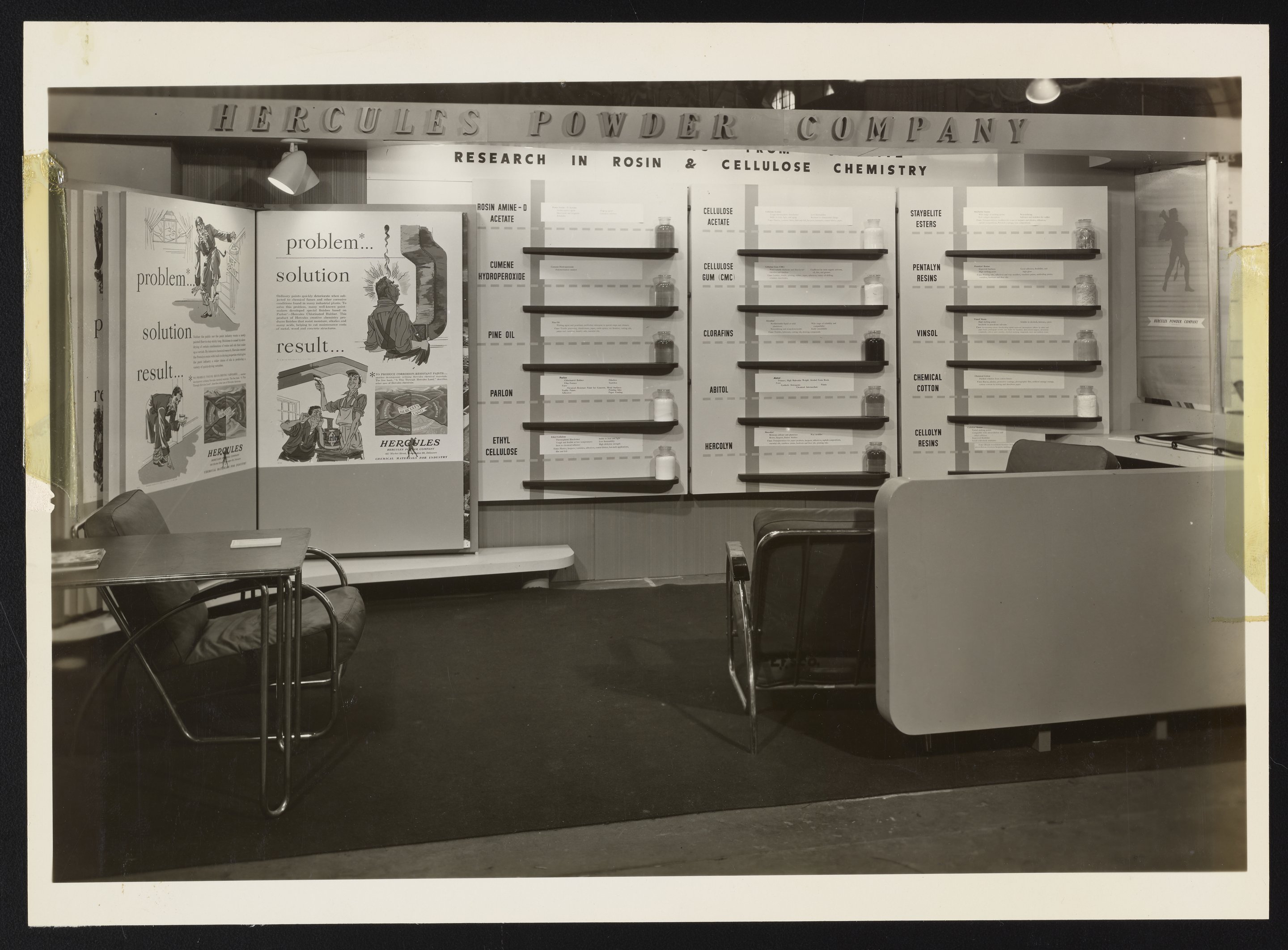 Hercules Incorporated. “Hercules Powder Company Exhibition Display (circa 1950s),” 1950–1959. Photographs from the Records & Ephemera of Hercules Incorporated, Box 27, Folder 20. Science History Institute. Philadelphia. https://digital.sciencehistory.org/works/a79epqh.
