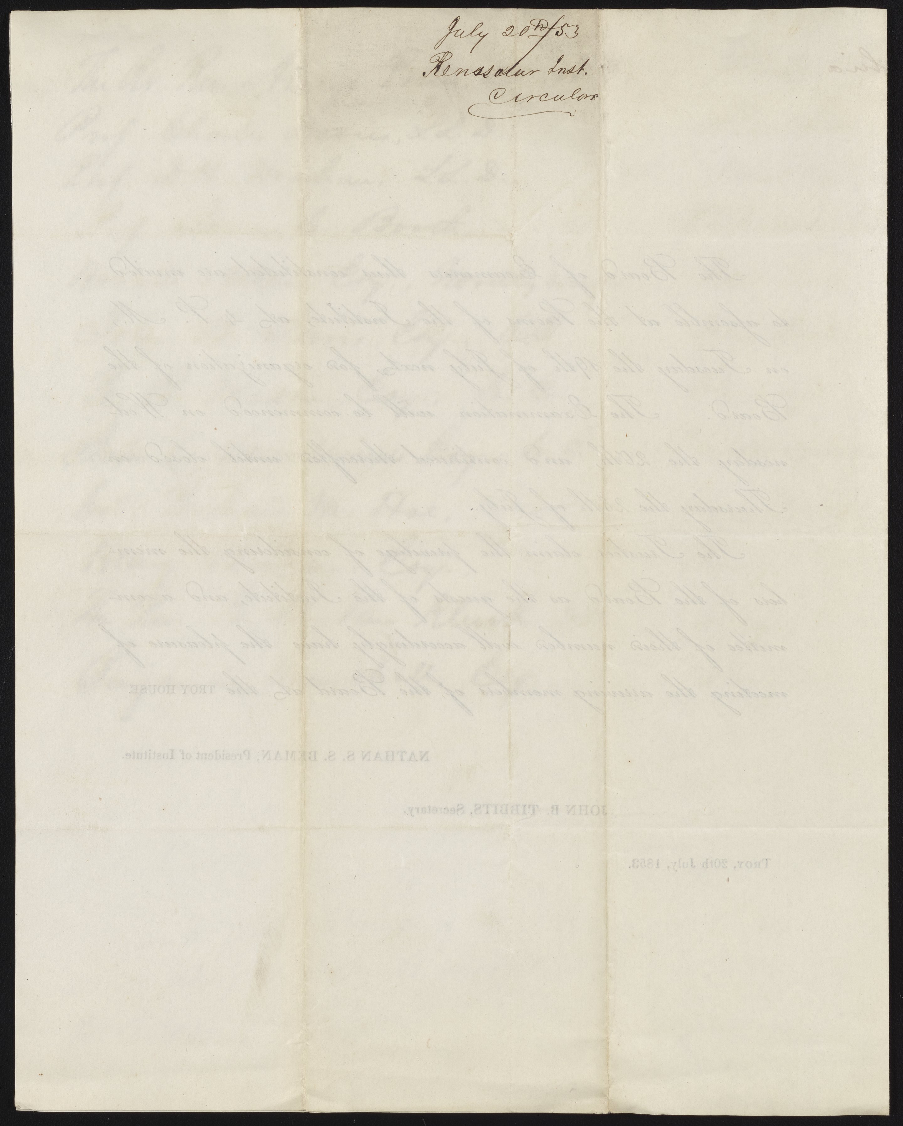 Letter from the Rensselaer Polytechnic Institute to James Curtis Booth