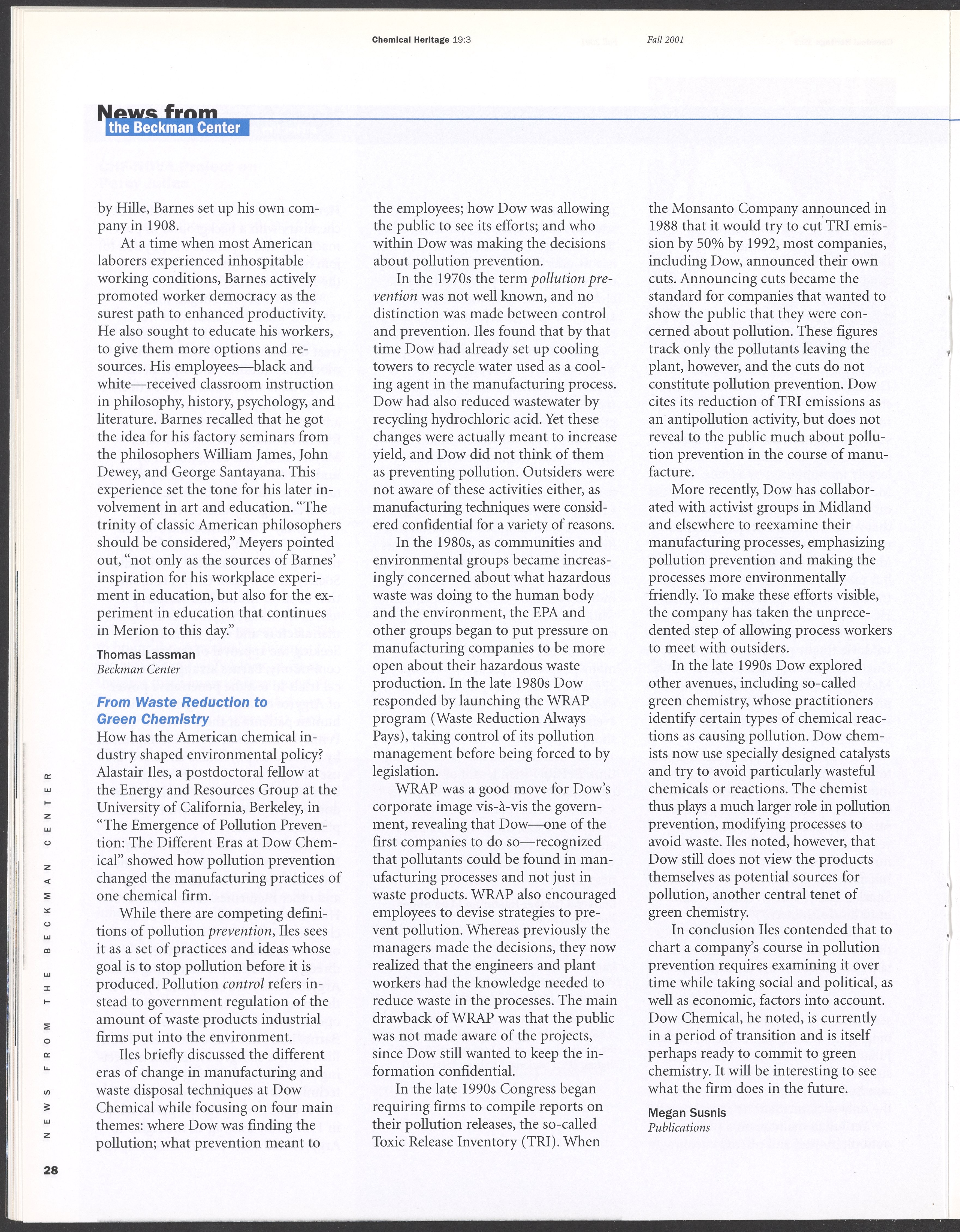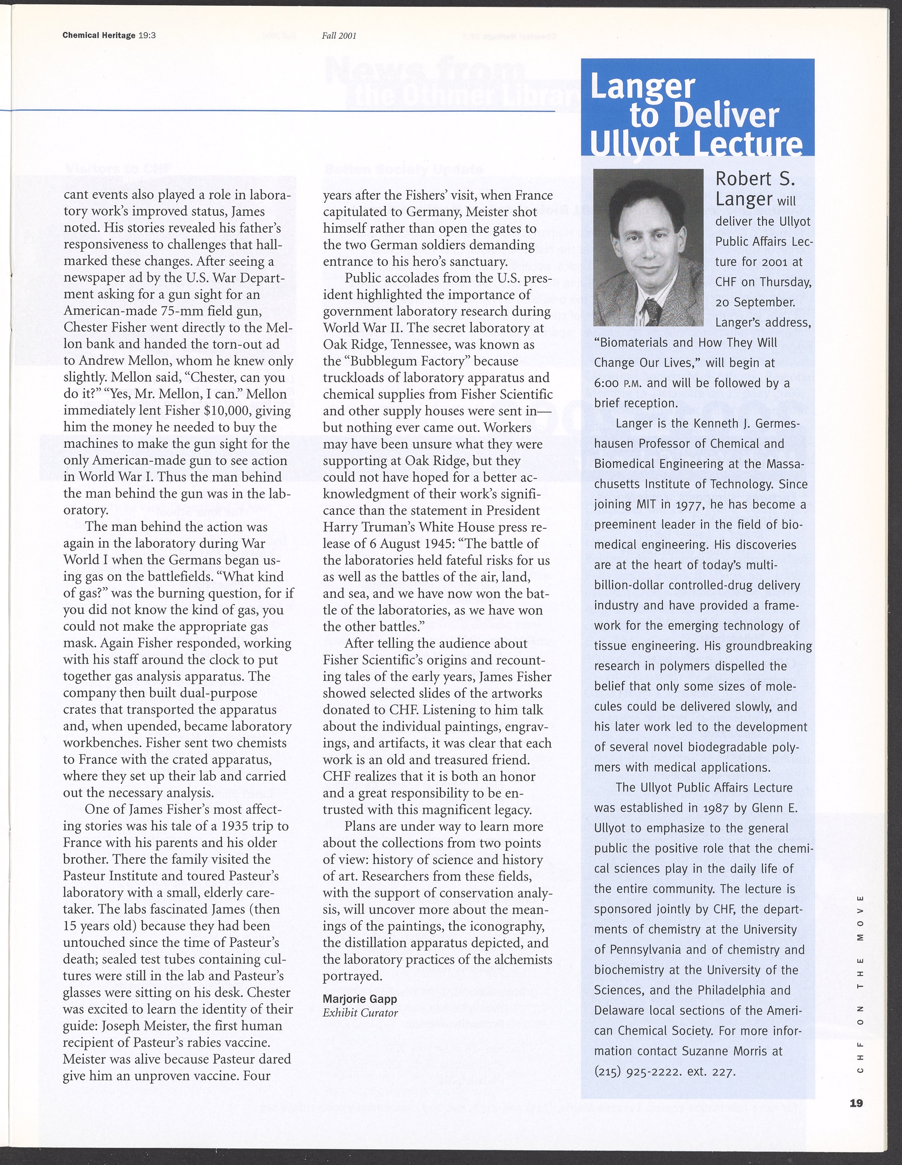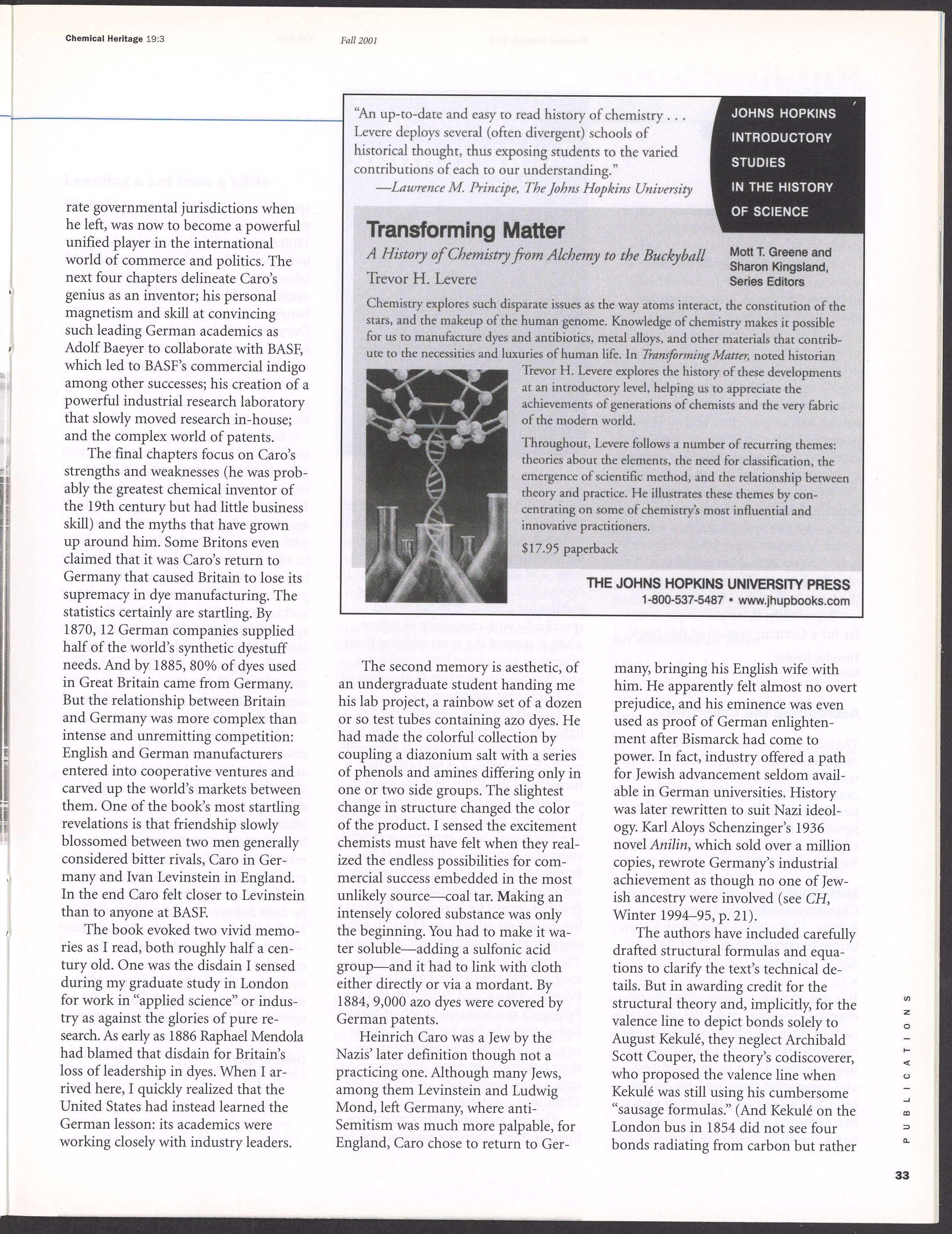 Chemical Heritage, Volume 19 Number 3