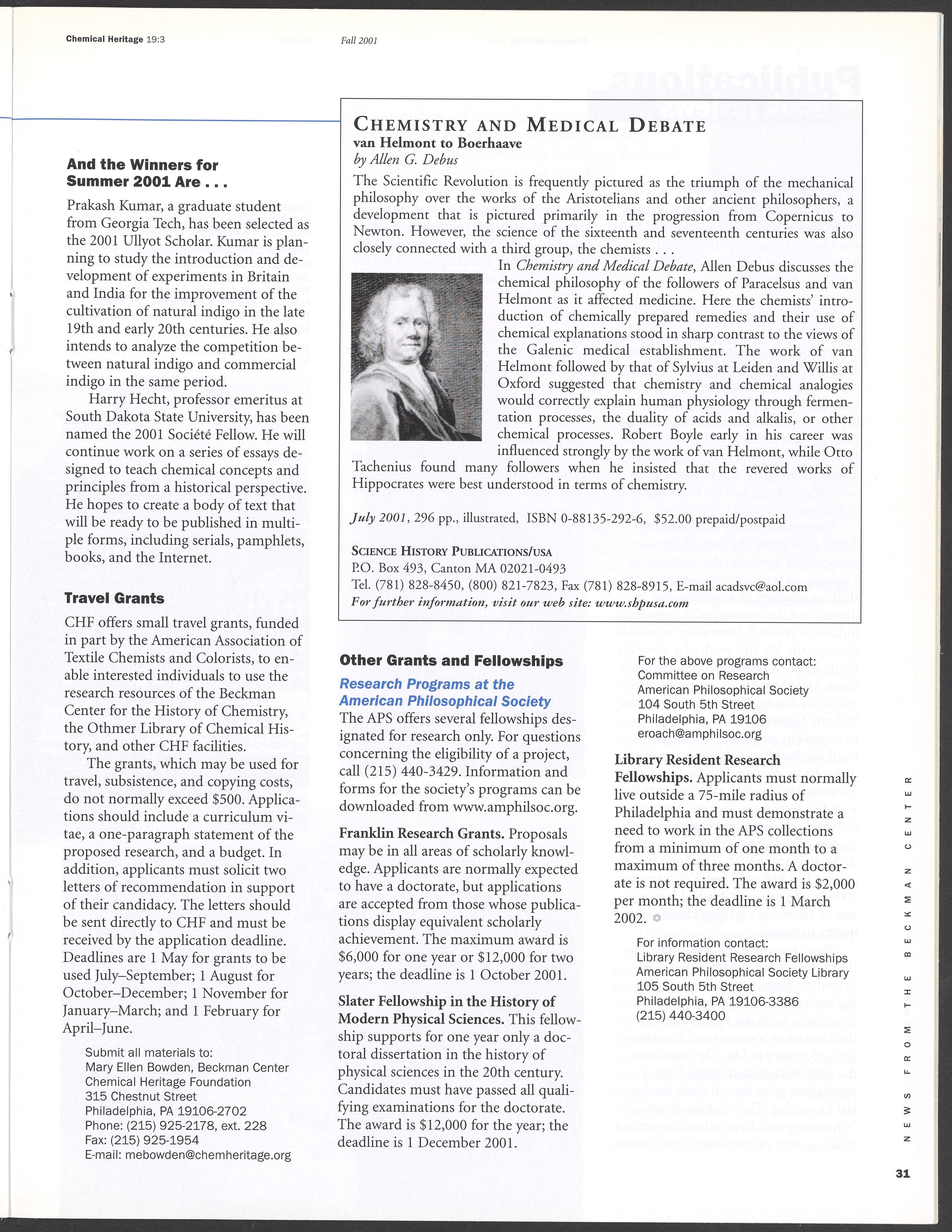 Chemical Heritage, Volume 19 Number 3