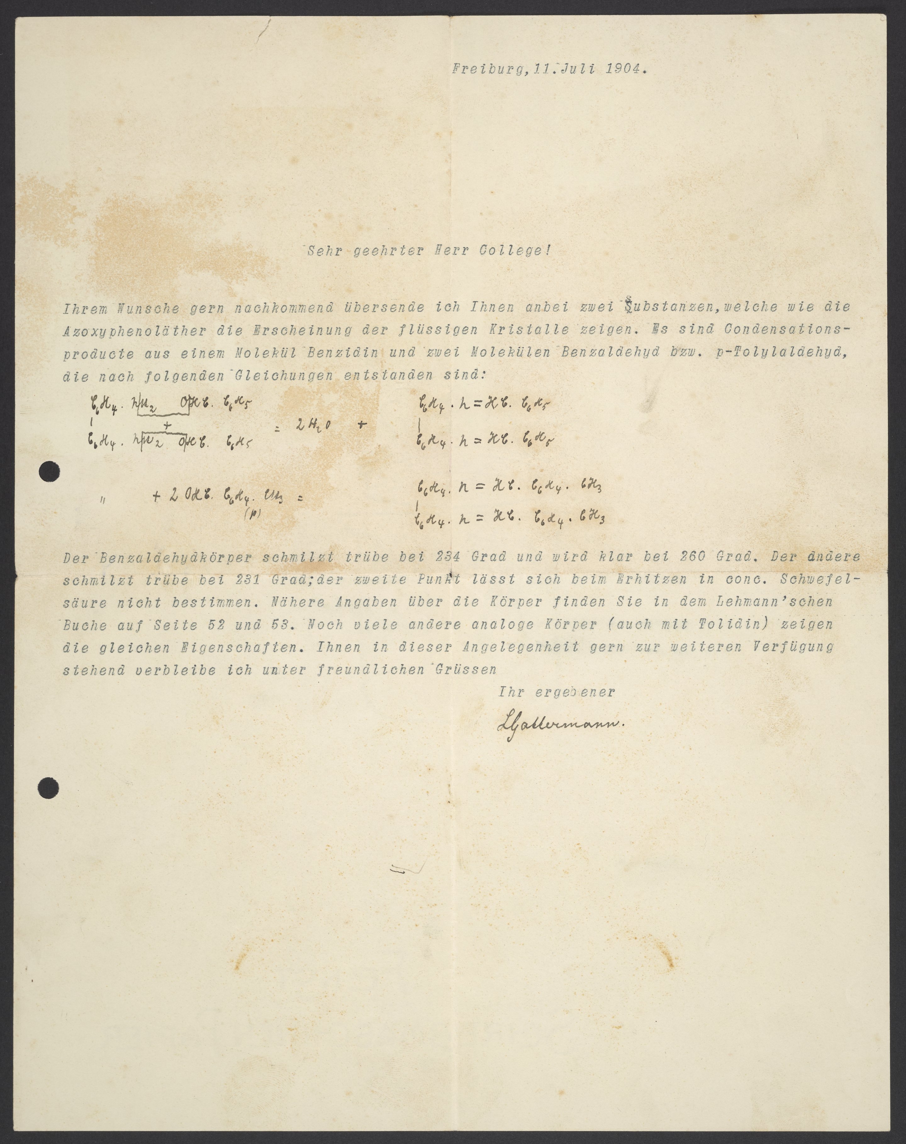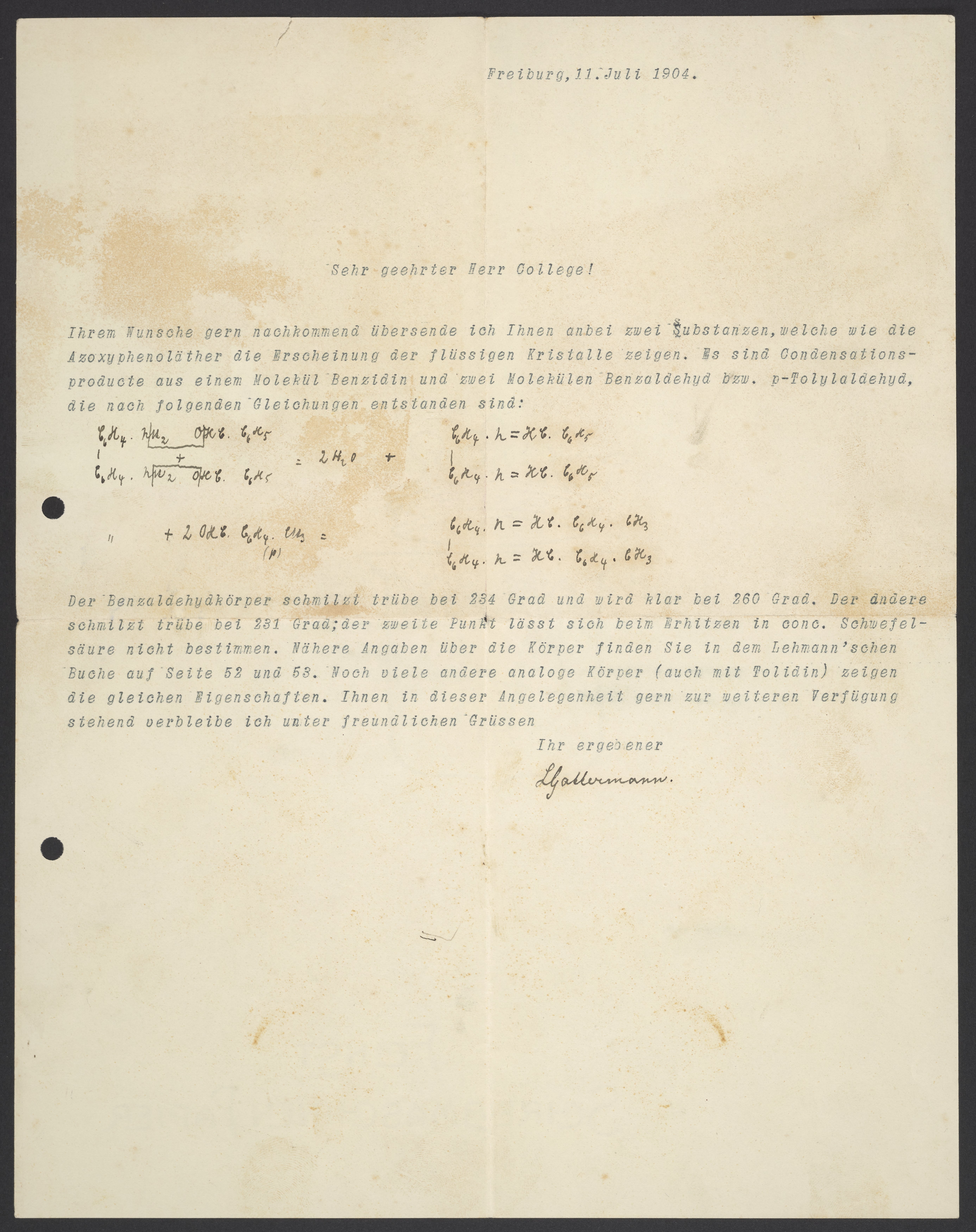 Letter from Ludwig Gattermann to Georg Bredig