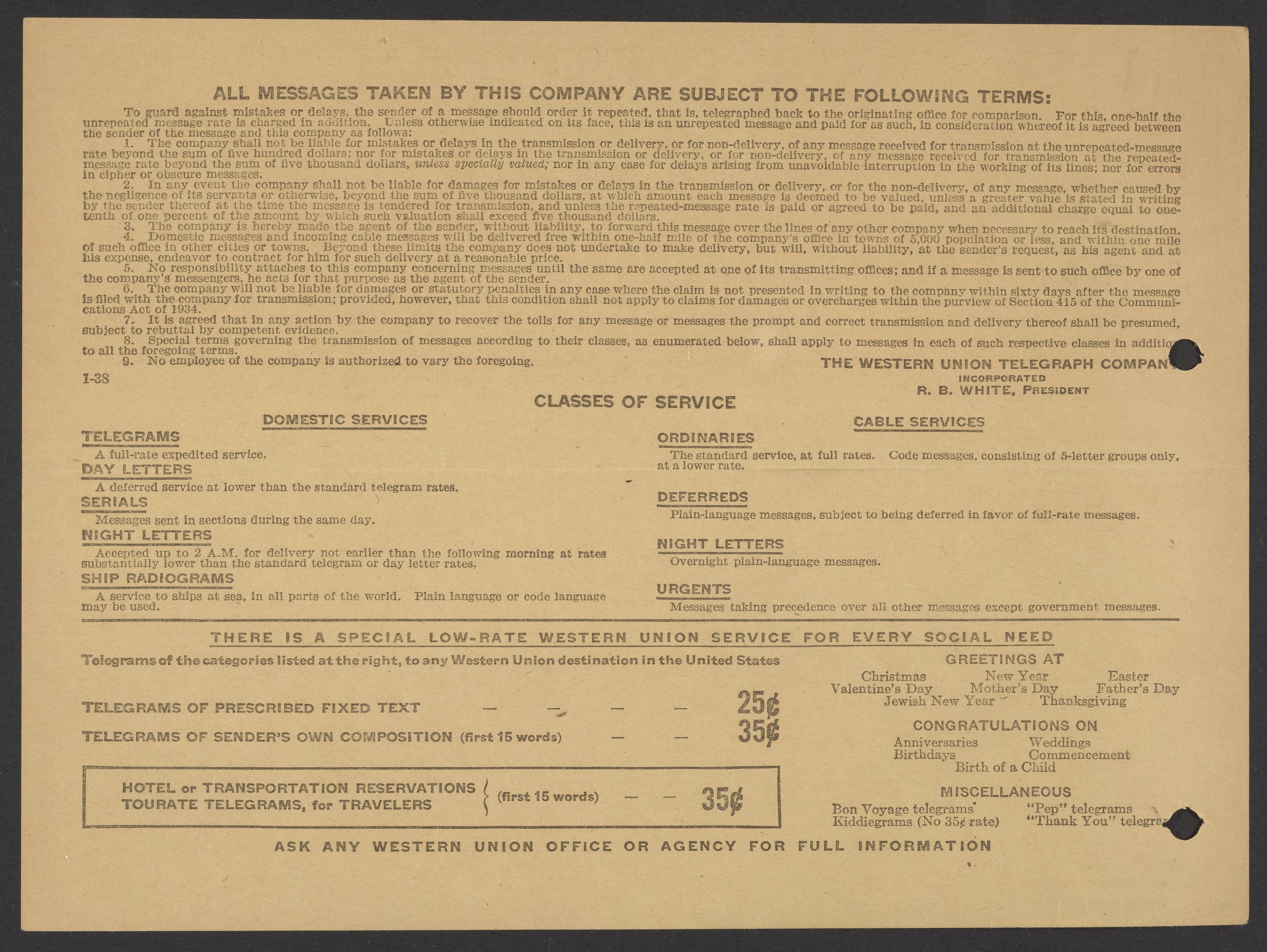 Bredig, Max Albert. “Telegram from Max Bredig to Georg Bredig, January 1940,” January 6, 1940. Papers of Georg and Max Bredig, Box 1, Folder 23. Science History Institute. Philadelphia. https://digital.sciencehistory.org/works/ag7v4kj.