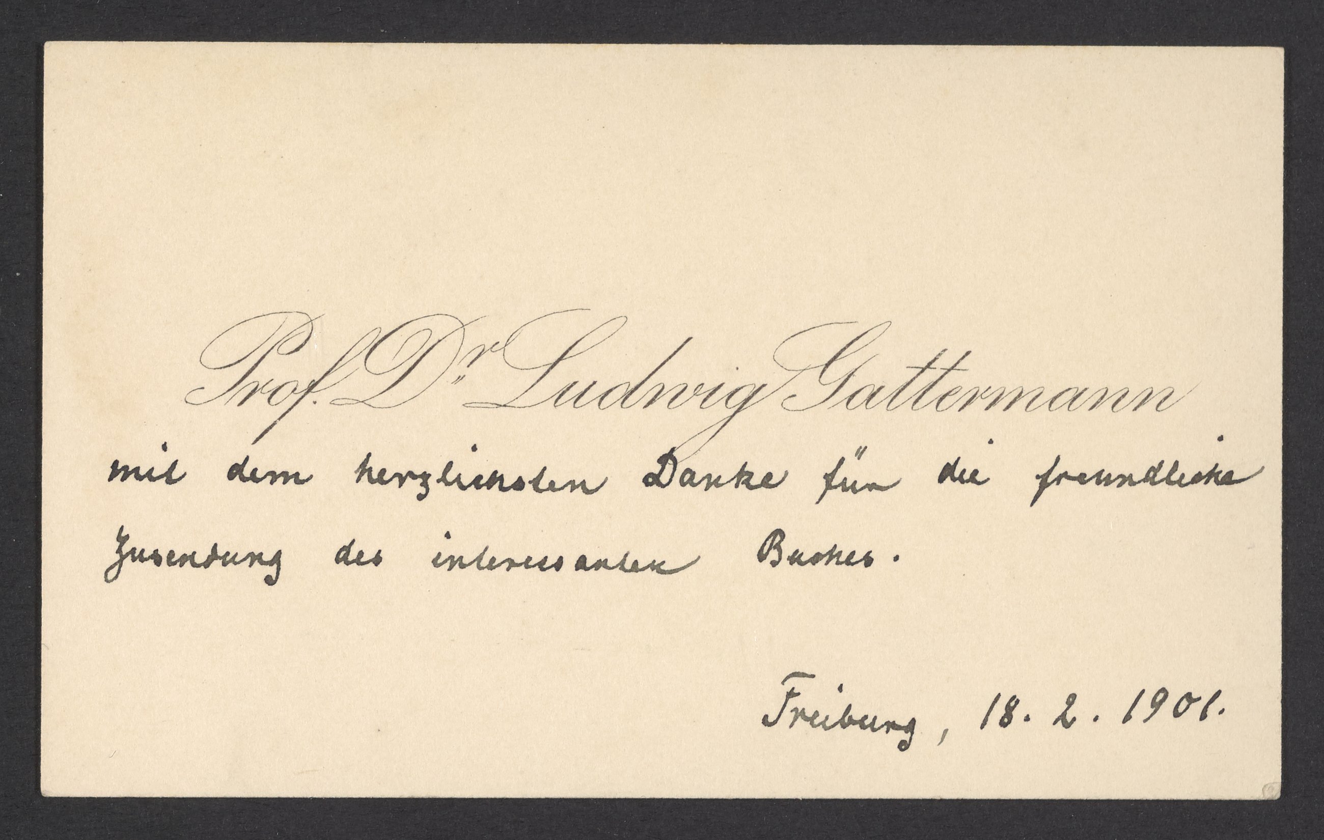 Thank you note from Ludwig Gattermann (1860-1920) to Georg Bredig (1868-1944).