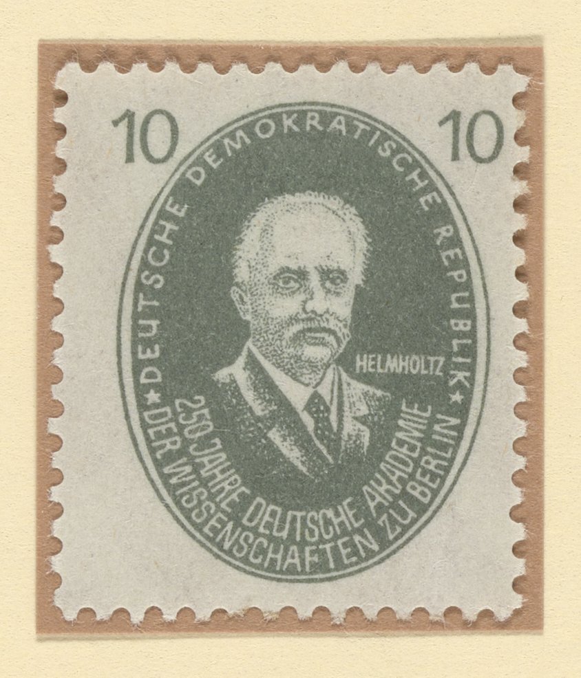 PDFFull-sized JPG844 x 986px — 154 KBOriginal fileTIFF — 844 x 986px — 2.4 MBPostage stamp from the German Democratic Republic (East Germany), commemorating the 250th anniversary of the German Academy of Sciences in Berlin. The stamp features a portrait of Hermann von Helmholtz (1821-1894), a renowned German physicist and physiologist.