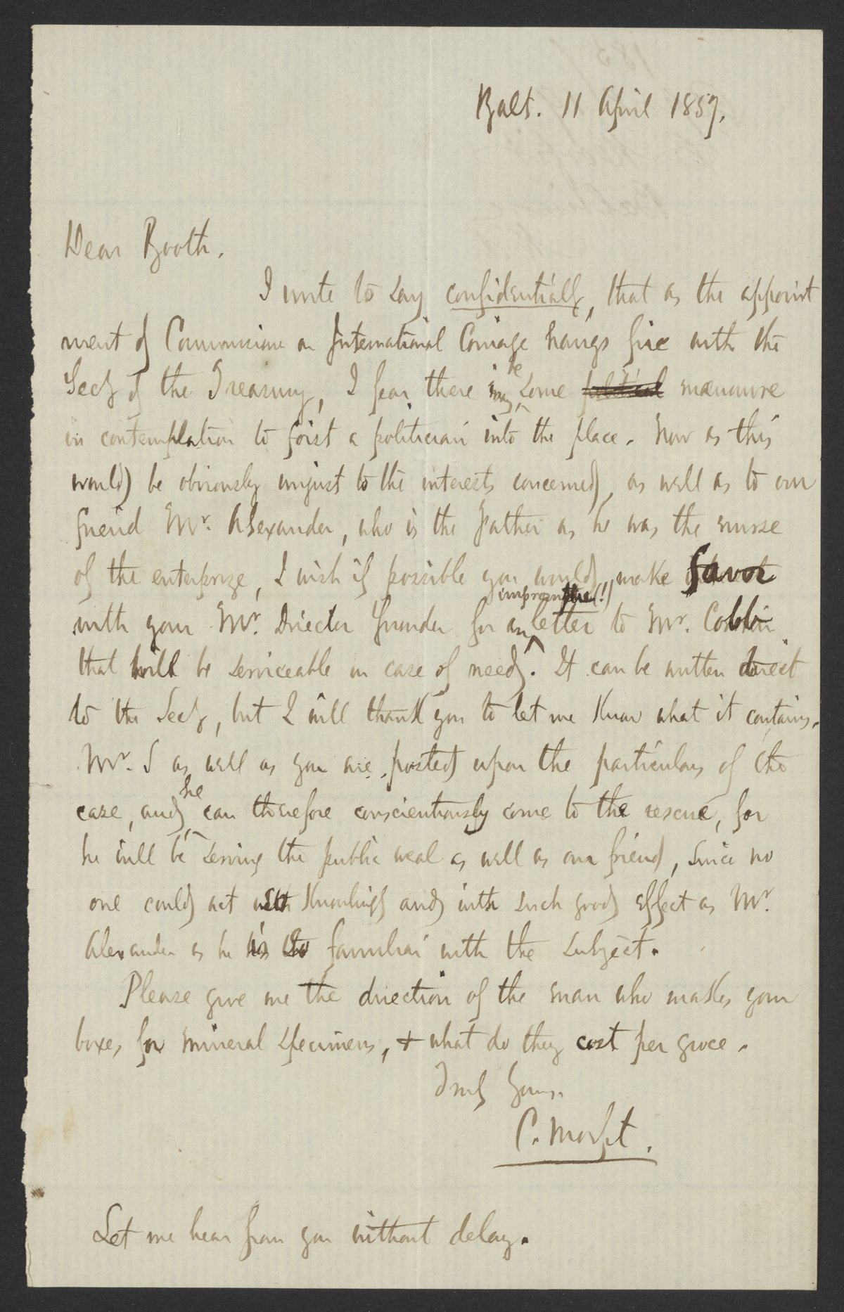 Letter from Campbell Morfit to James Curtis Booth, April 11, 1859