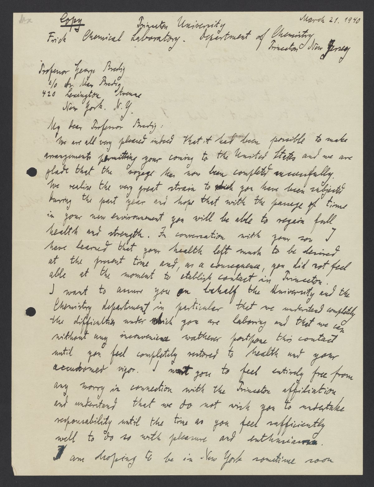 Letter from Hugh S. Taylor to Georg Bredig, March 21, 1940